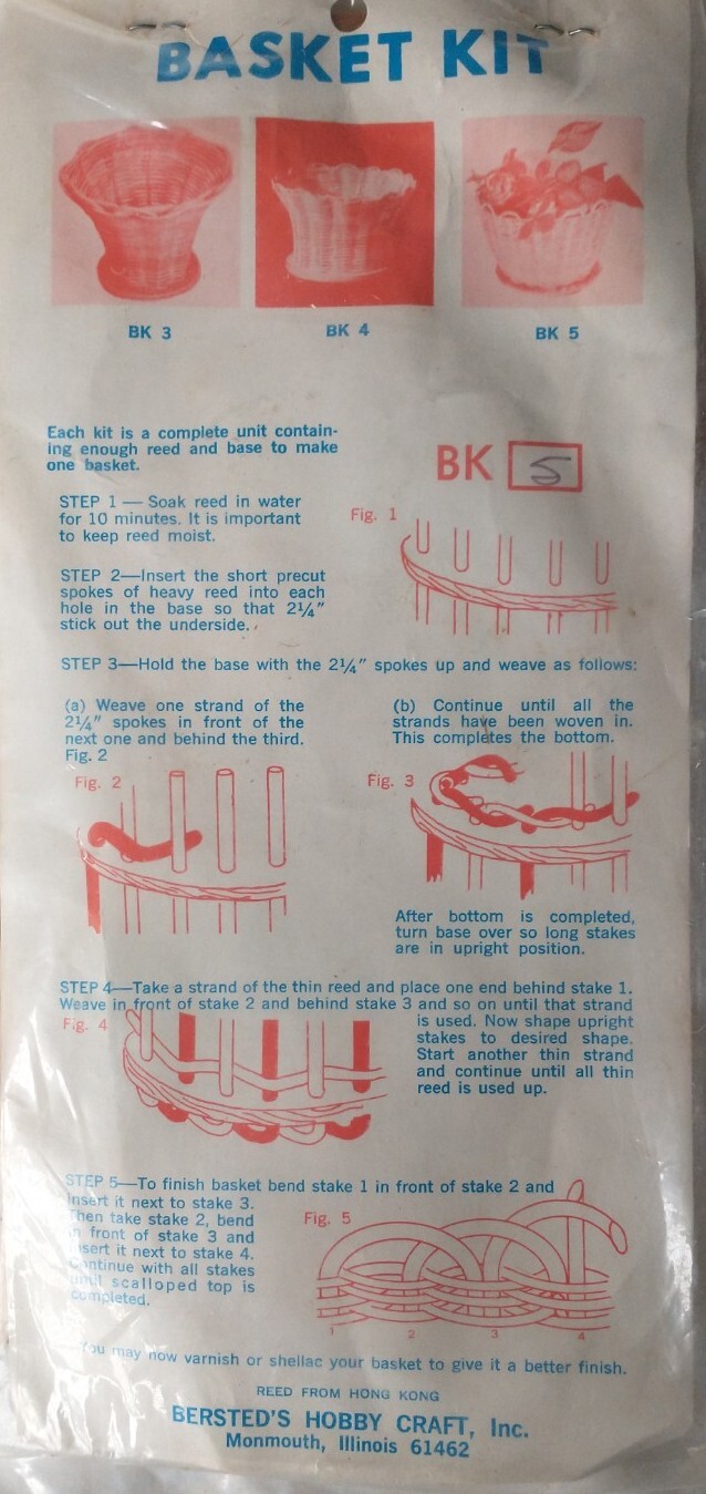 2 Vtg NOS DIY Wicker Basket Kits Bersted's Hobby Craft Kits No.1 and BK 5