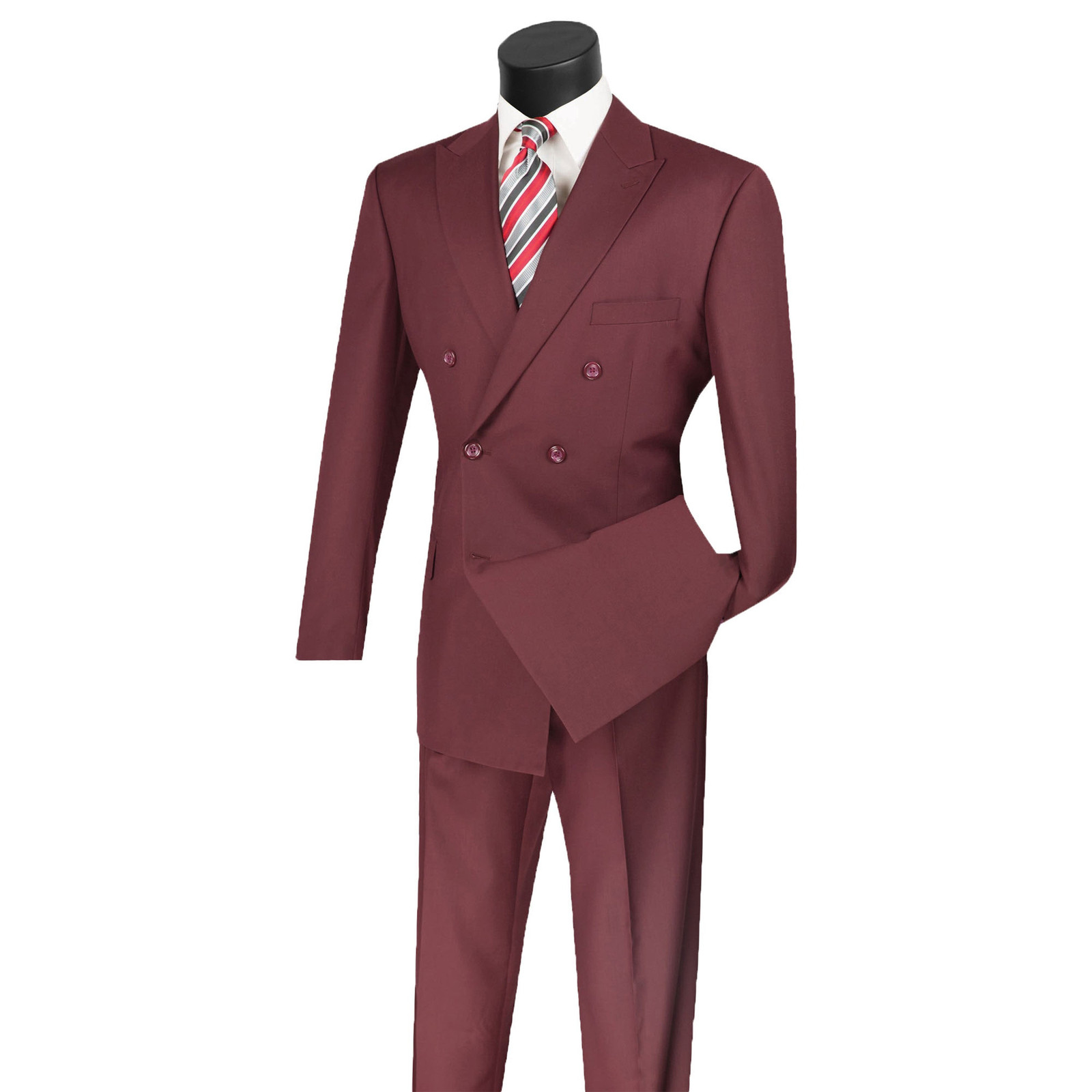 VINCI Men's Burgundy Double-Breasted Suit w/ Adjustable Waist, Reg-Fit - NEW