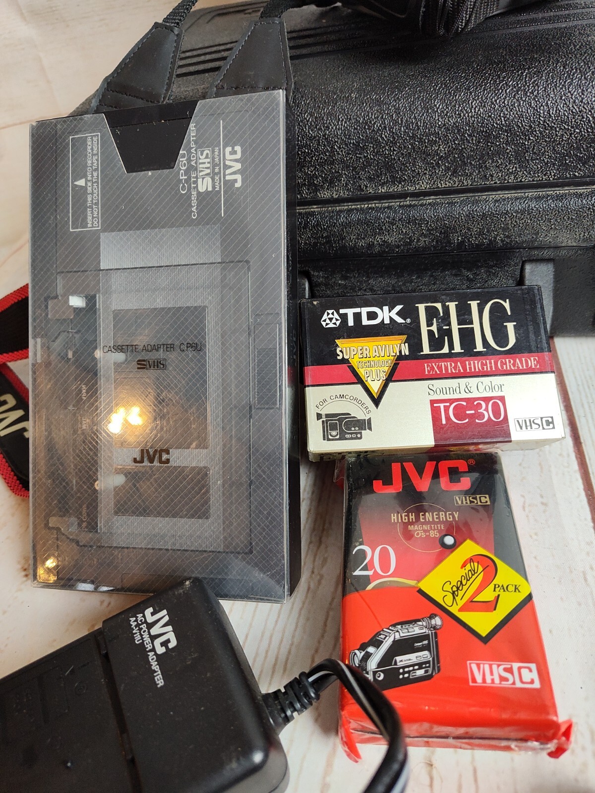 JVC GR AX55/AX3 VHS Recorder Camcorder w/ Case, Charger, Cables, Manual, Tapes