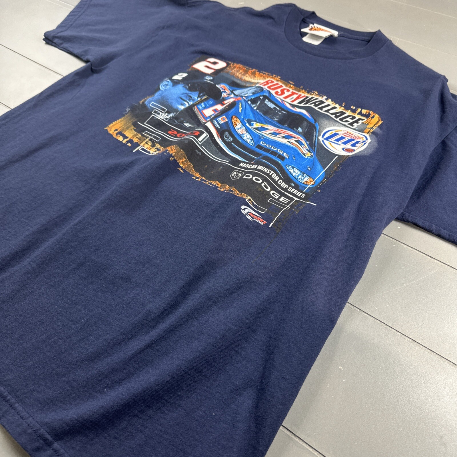 Vintage RUSTY WALLACE NASCAR Miller Beer Racing T-Shirt Size Large
