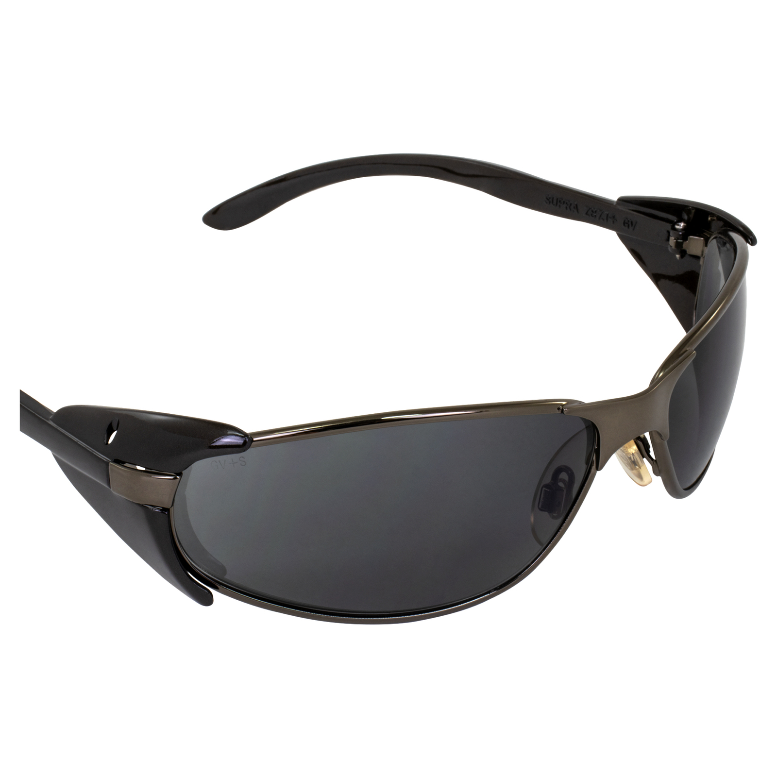 как выглядит AVIS SUPRA SAFETY GLASSES SIDE SHIELDS GUN METAL BLACK FRAMES SMOKE LENS фото
