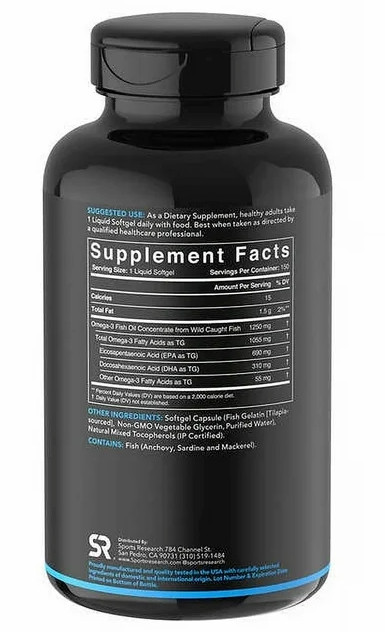 Sports Research Omega-3 Fish Oil Triple Strength 150 Softgels
