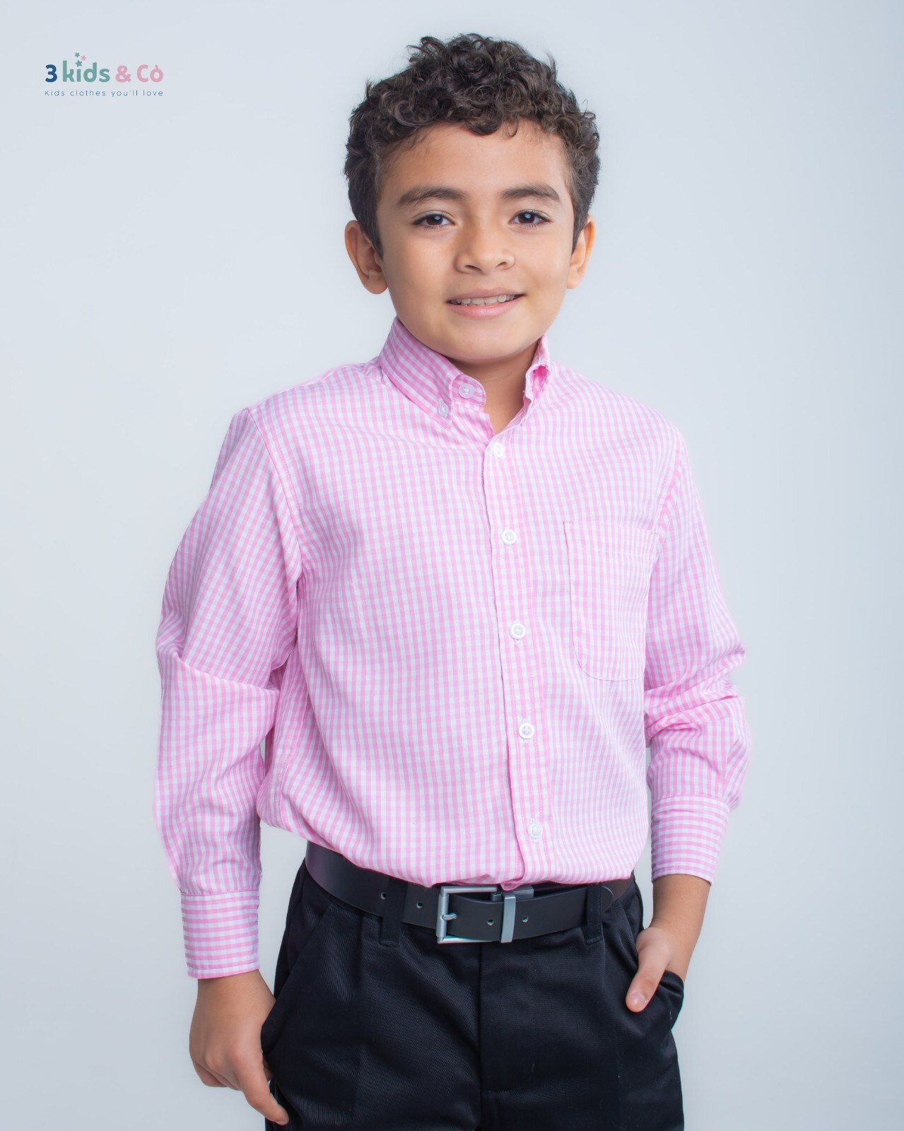 4 Boys Gingham All-Season Button Down Long Sleeve Dress Shirts 4 Pack