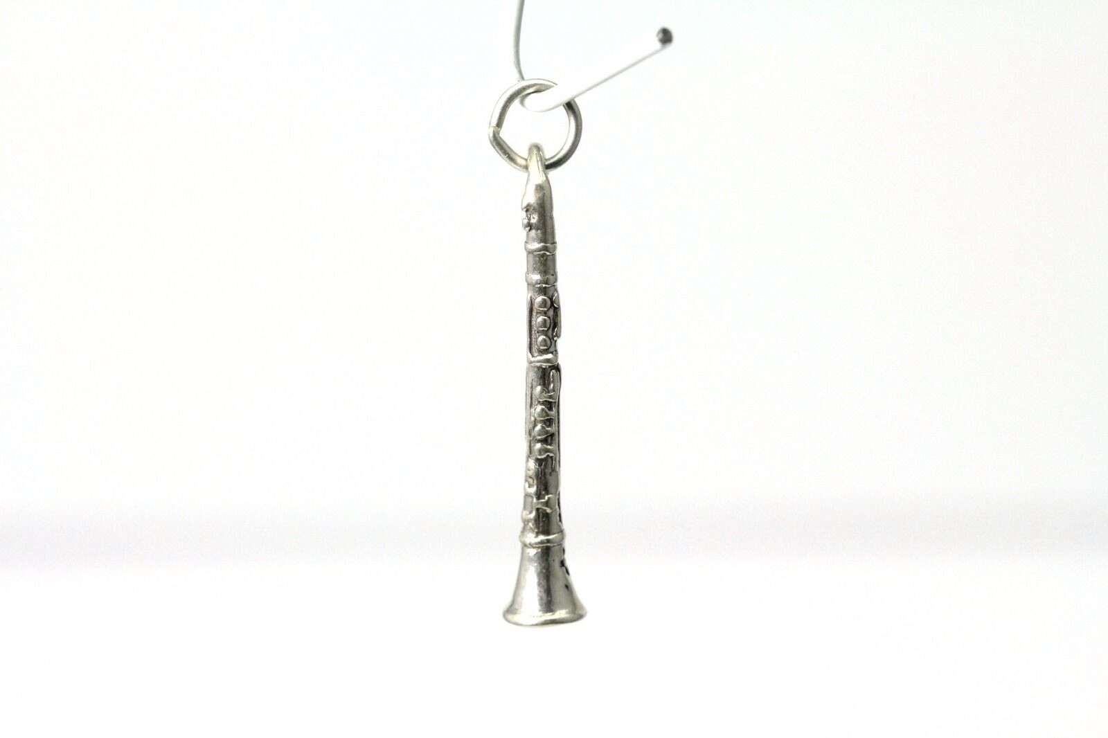 925 Sterling Silver 3D Clarinet Music Charm Pendant 2.3 Grams PEN3472
