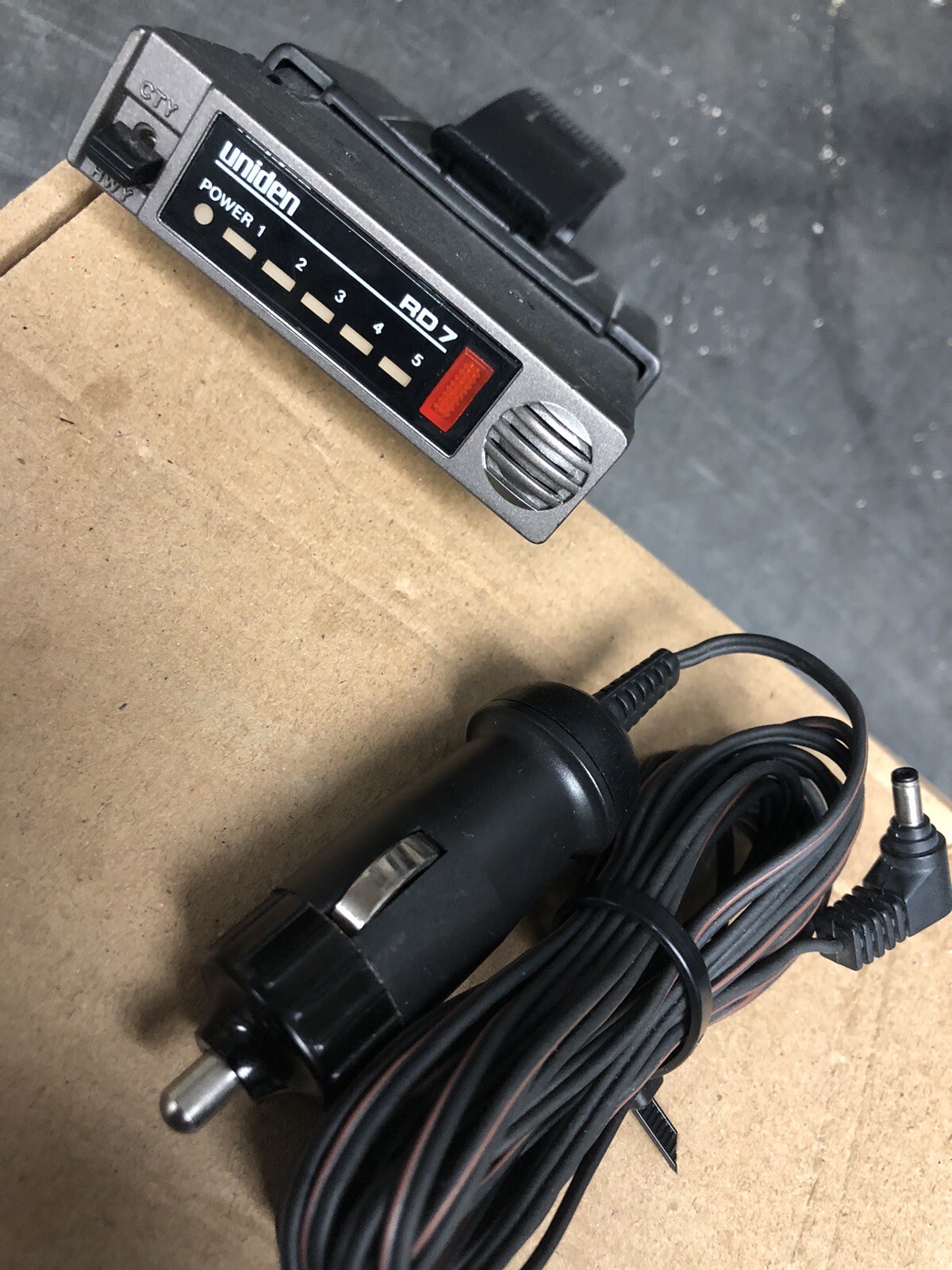 Vintage Uniden RD7 Radar Detector tested powers on with Visor clip 12v cord