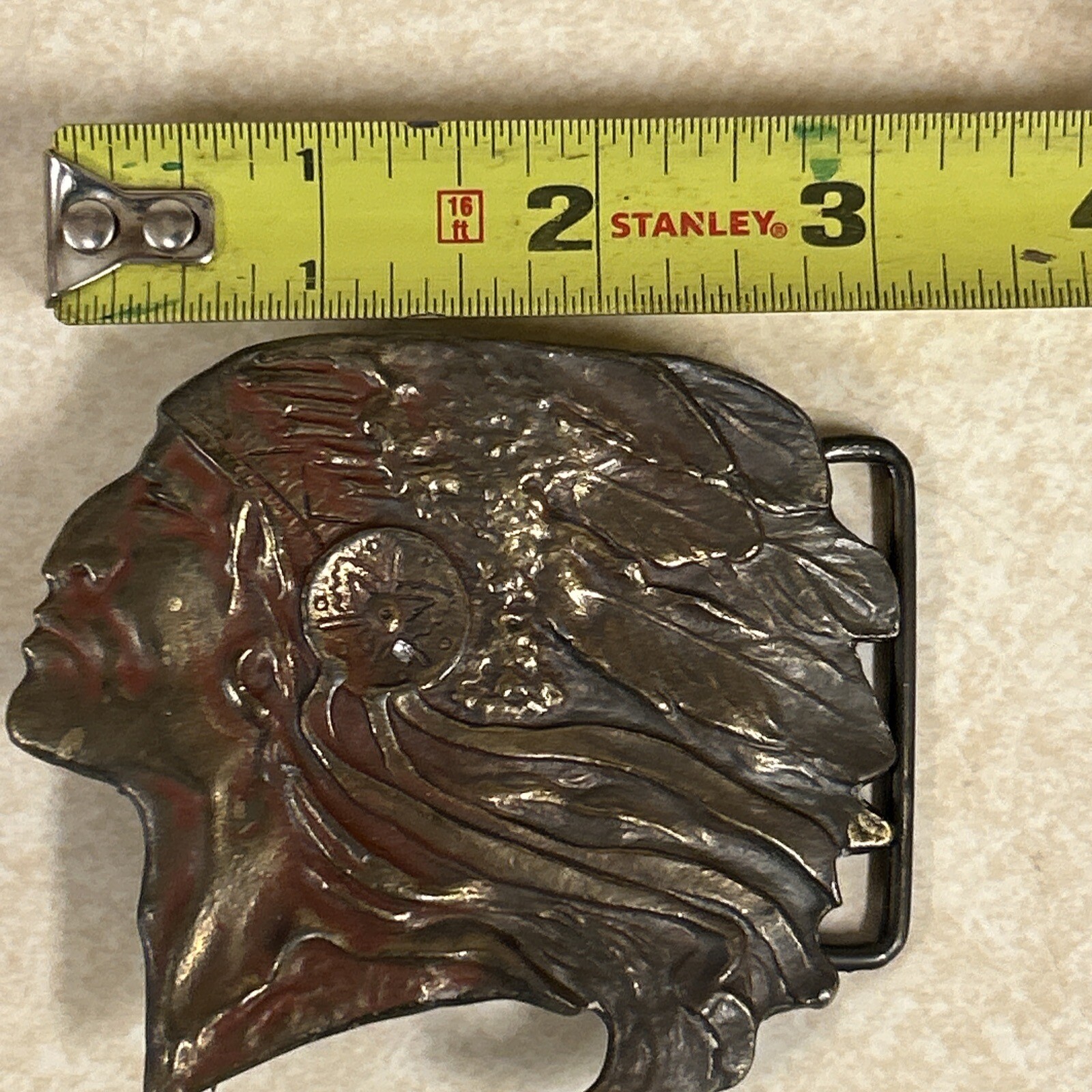 Vintage Metal Native American Indian Chief Belt Buckle Western Wear War Bonnet