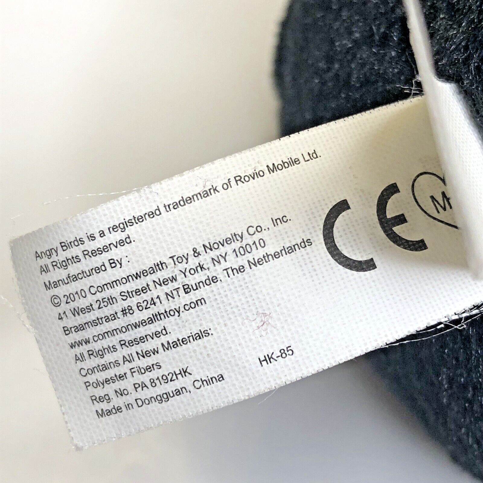 Angry Birds Plush Black Bomb 6 2010 Soft Toy Bird Stuffed Animal NO SOUND