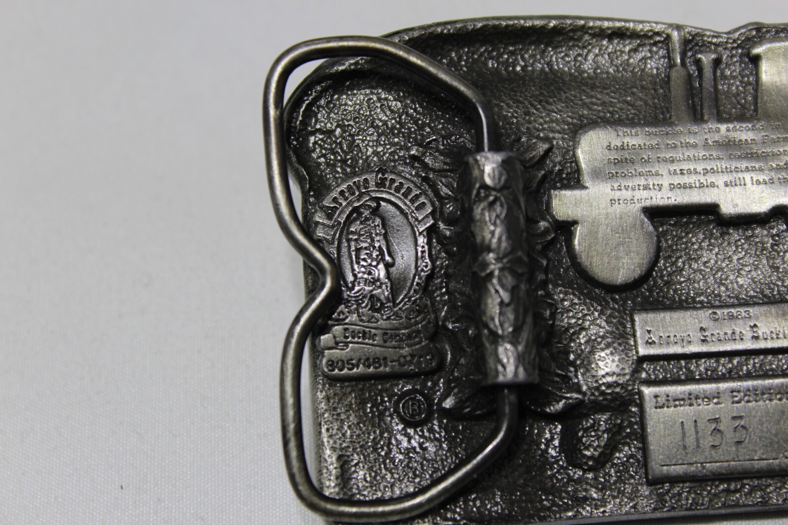 как выглядит Vintage 1983 Commemorative "AMERICAN AGRICULTURE" Pewter Belt Buckle, 1133/5000 фото