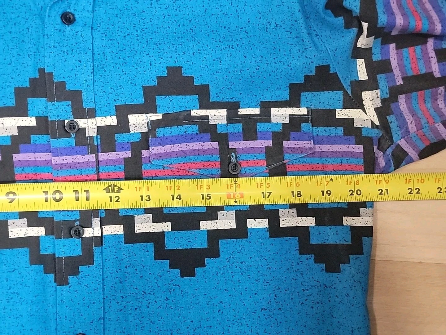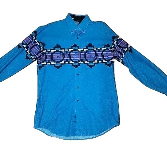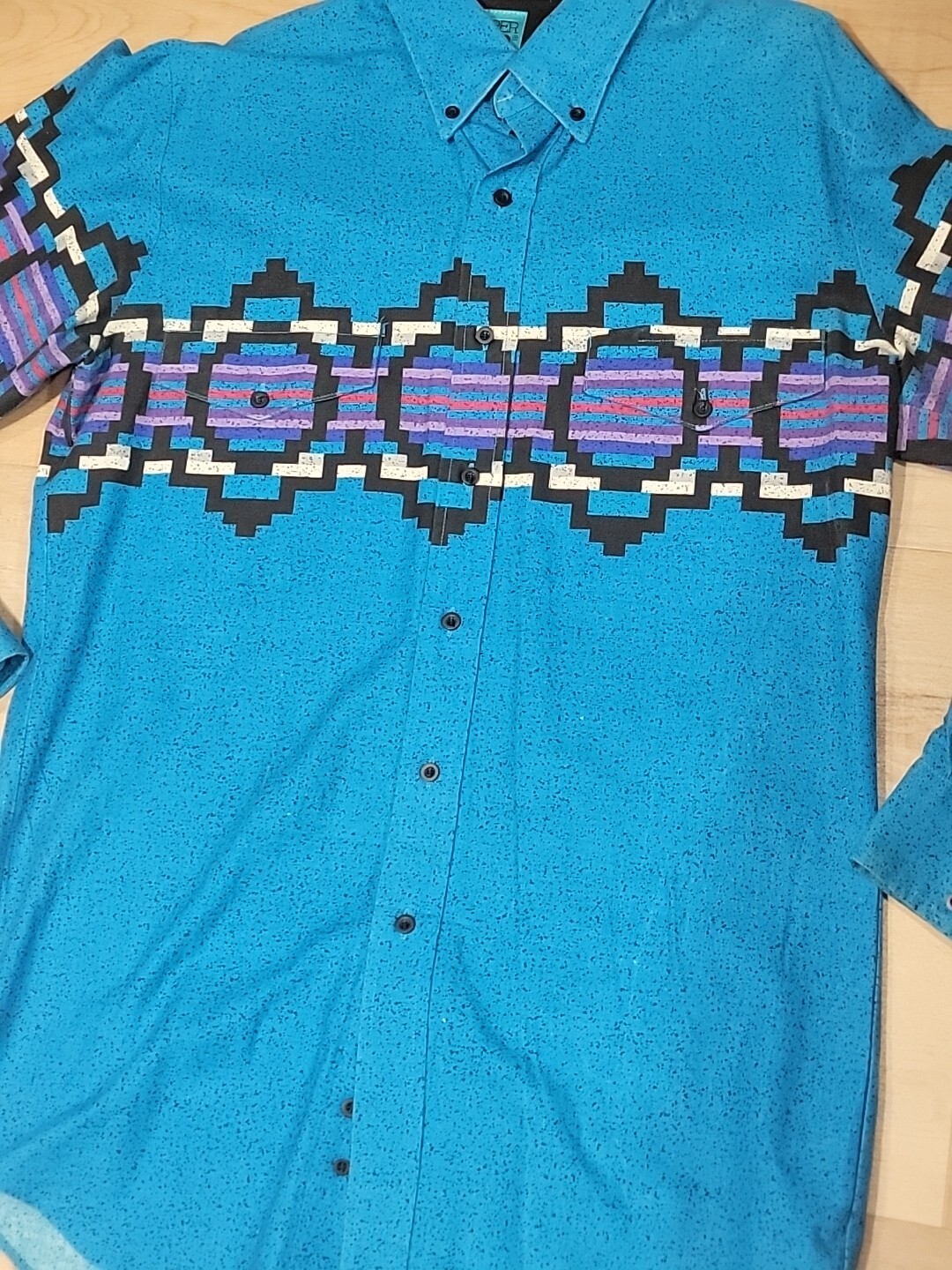 как выглядит Vintage ROPER AZTEC Blue Western Brushpopper Shirt Colorful Medium Made In USA фото