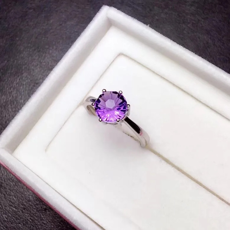 Exquisite 925 Sterling Silver 2CT Natural Amethyst Exotic Gemstone Ring