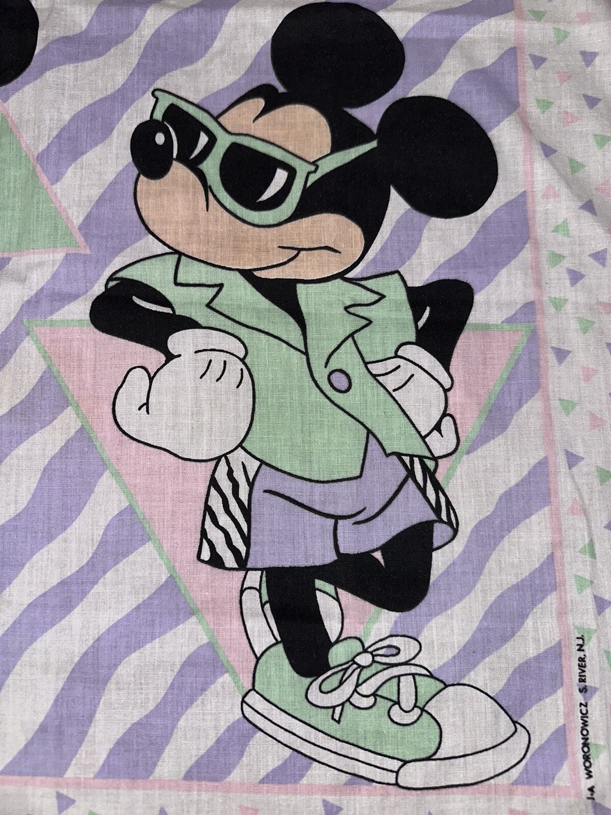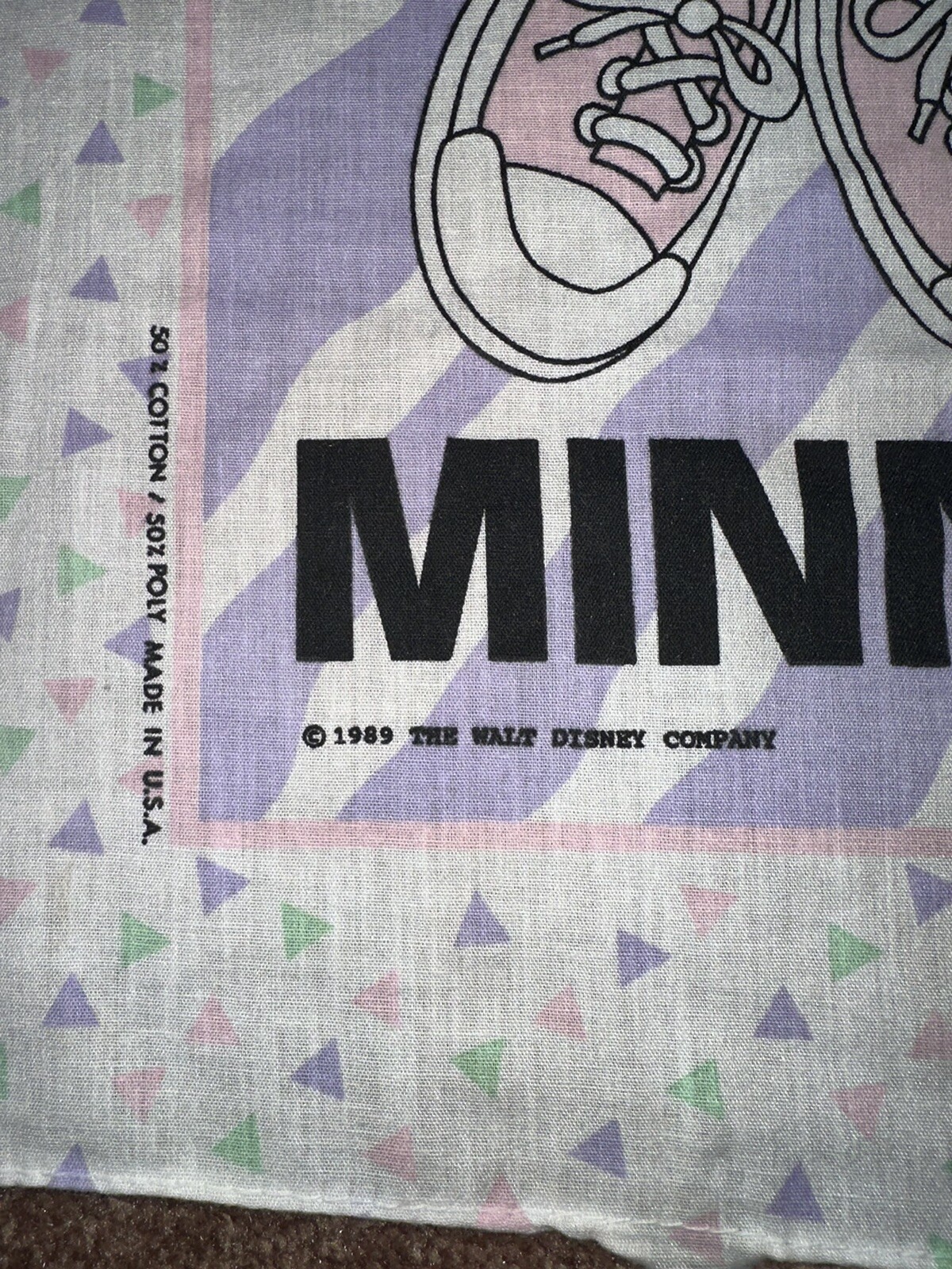 Vintage Mickey and Minnie Mouse Disney Scarf 1989 Pastel Colors 80s Bandana