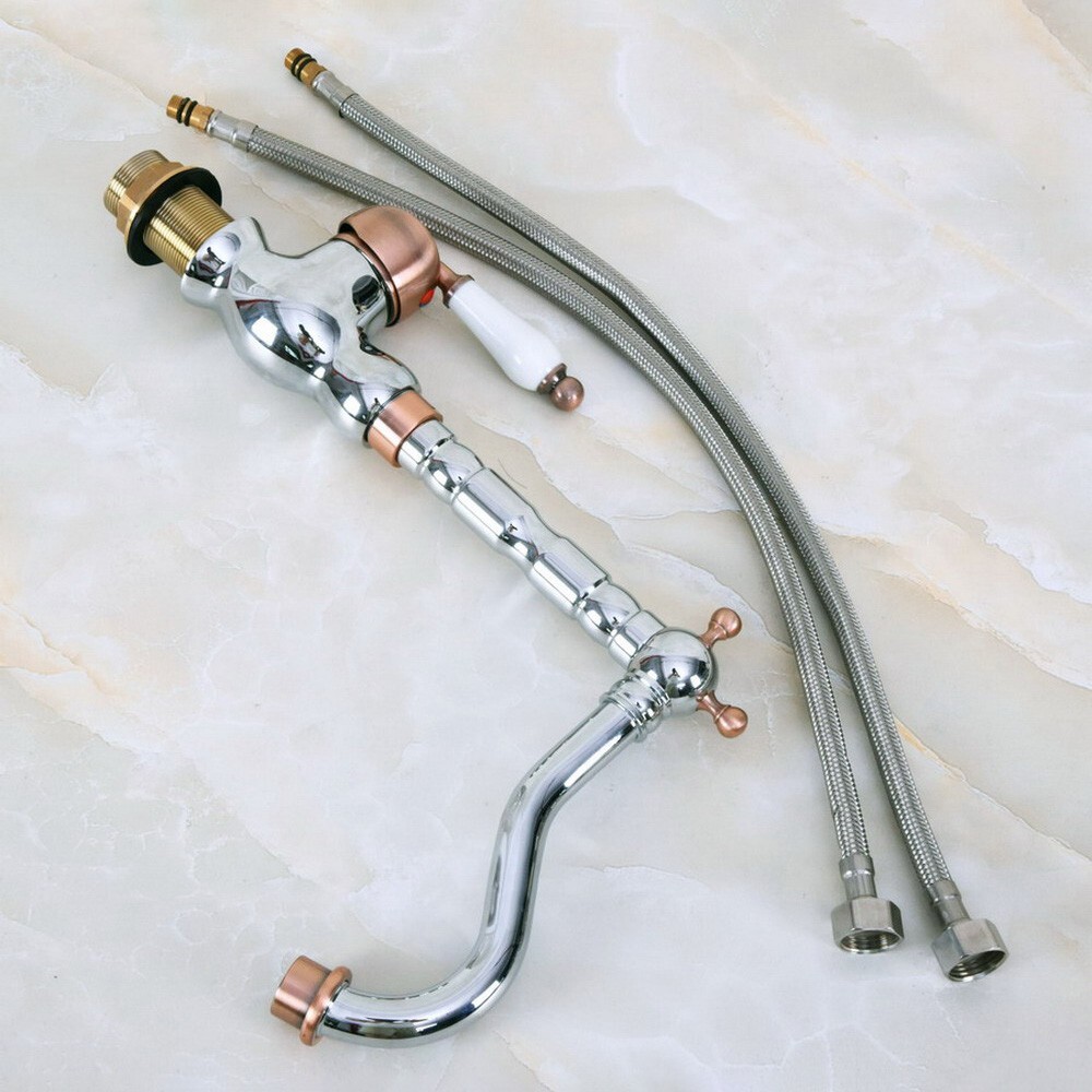Chrome Antique Red Copper Bath Kitchen Sink Swivel Spout Faucet Mixer Tap snf910