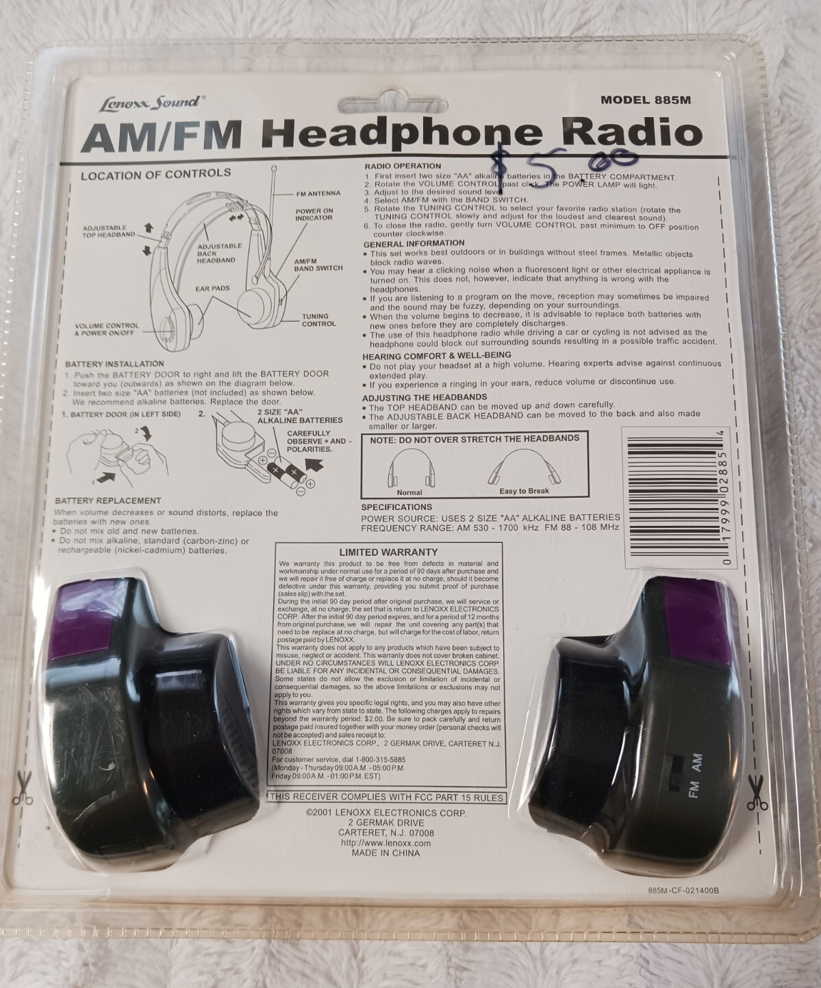 New Vintage Model 885M By Lenoxx Sound Headband Headphones AM/FM Radio Walkman