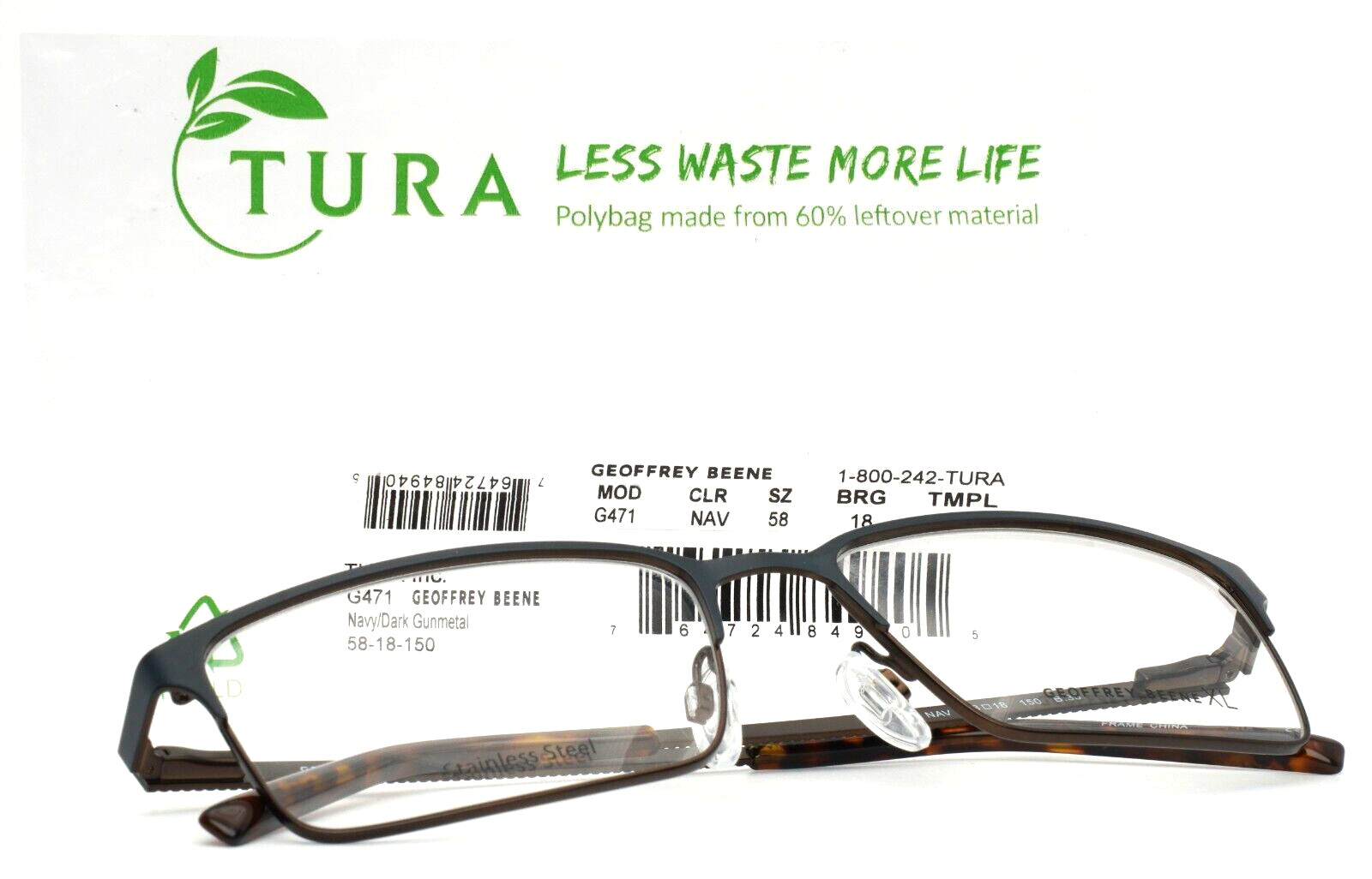 GEOFFREY BEENE XL G471 NAV Navy Mens Rectangle Eyeglasses 58-18-150 B:35