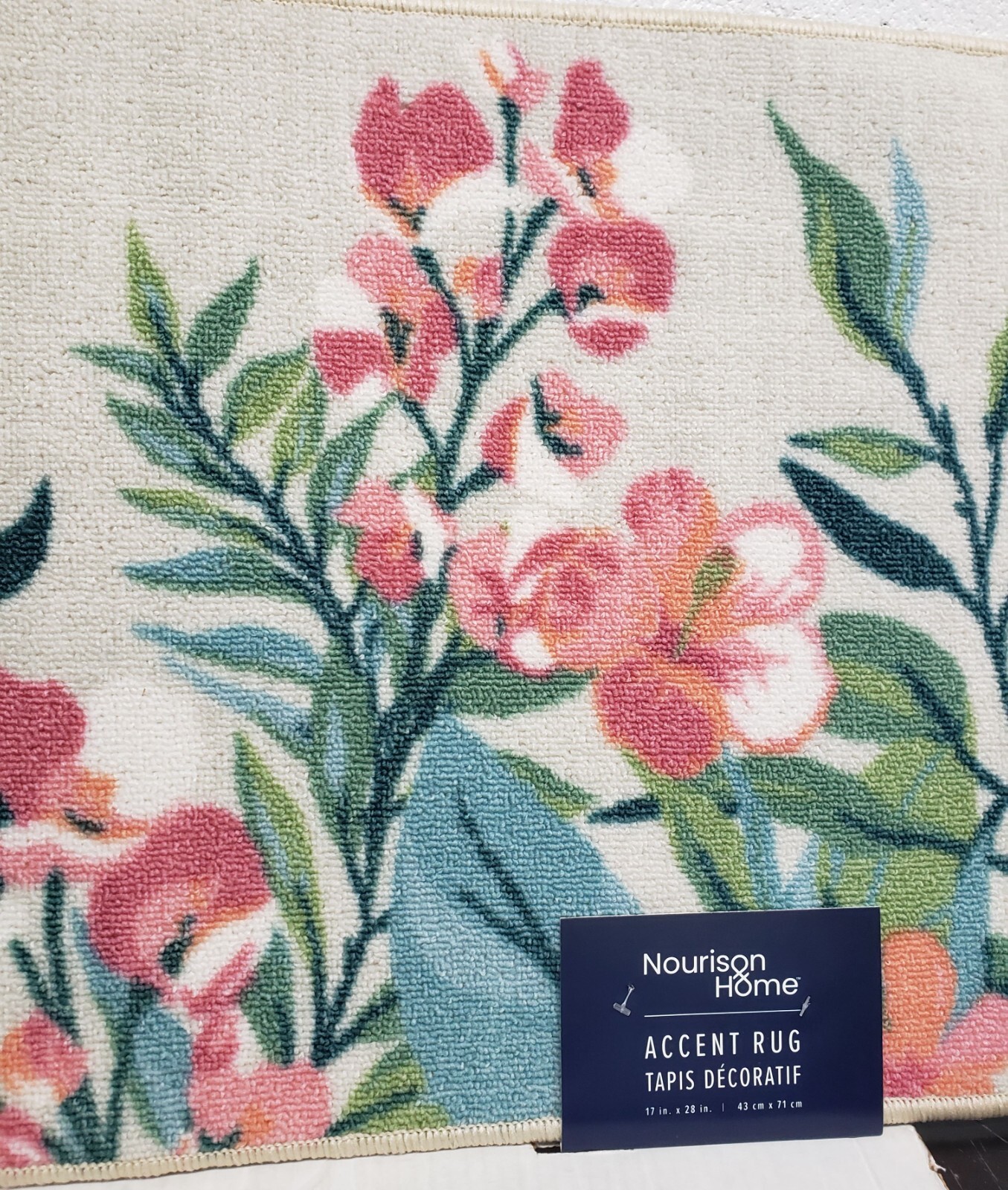 как выглядит Printed Kitchen Accent Rug nonskid 17"x28" PINK WHITE FLOWERS LEAVES, NR фото