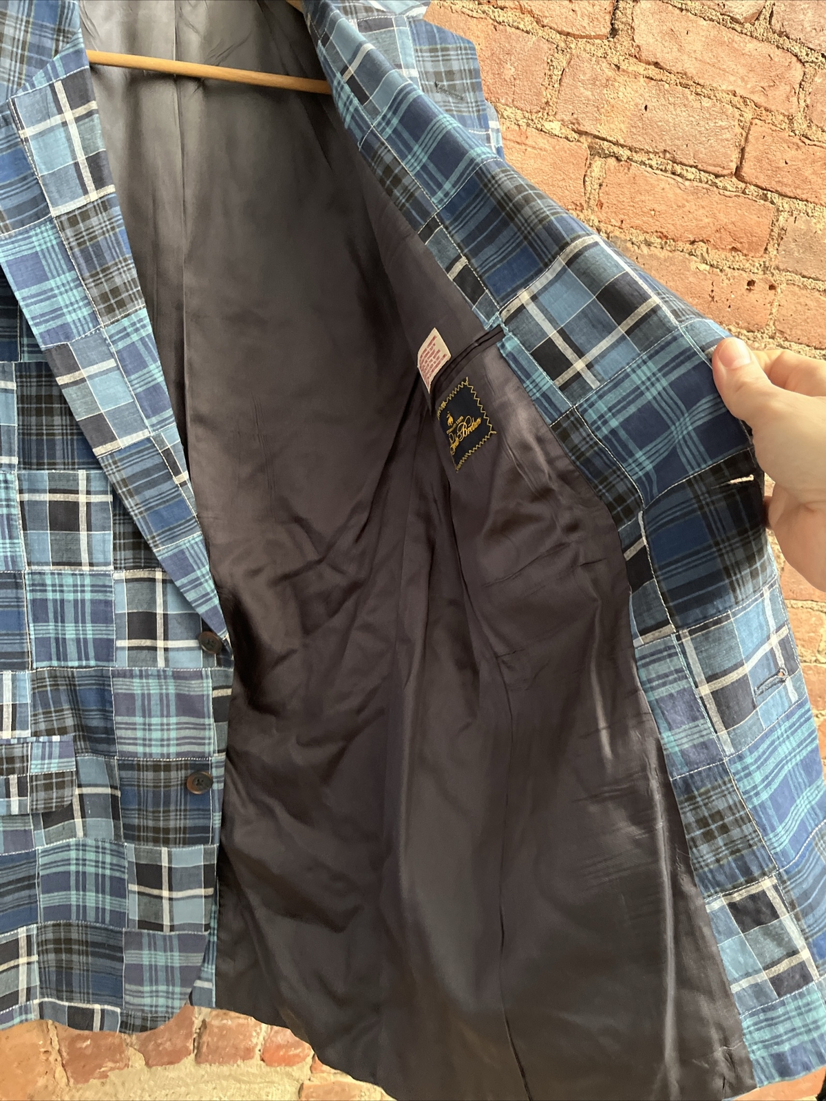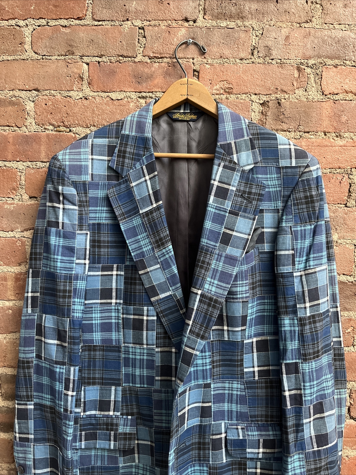 как выглядит Vintage Brooks Brothers Indigo Madras, Olde Patchwork Jacket, Sz 39R, USA Eras фото