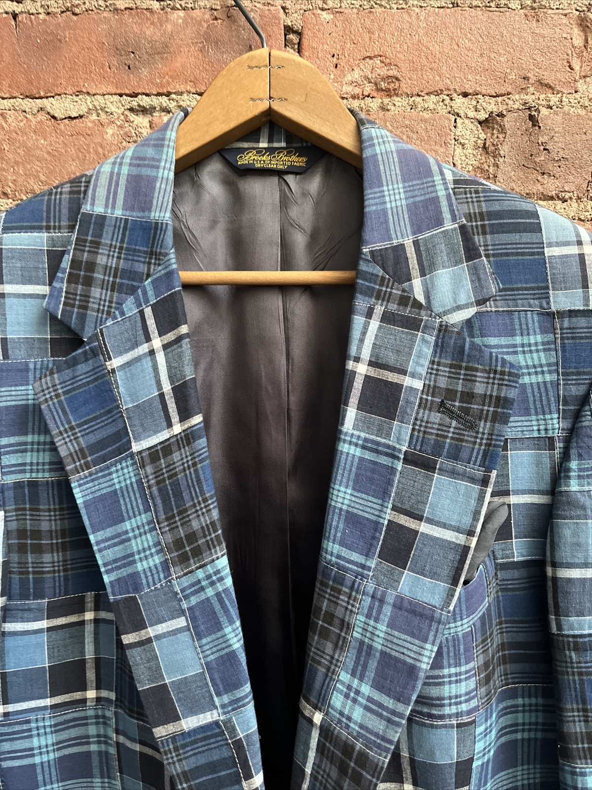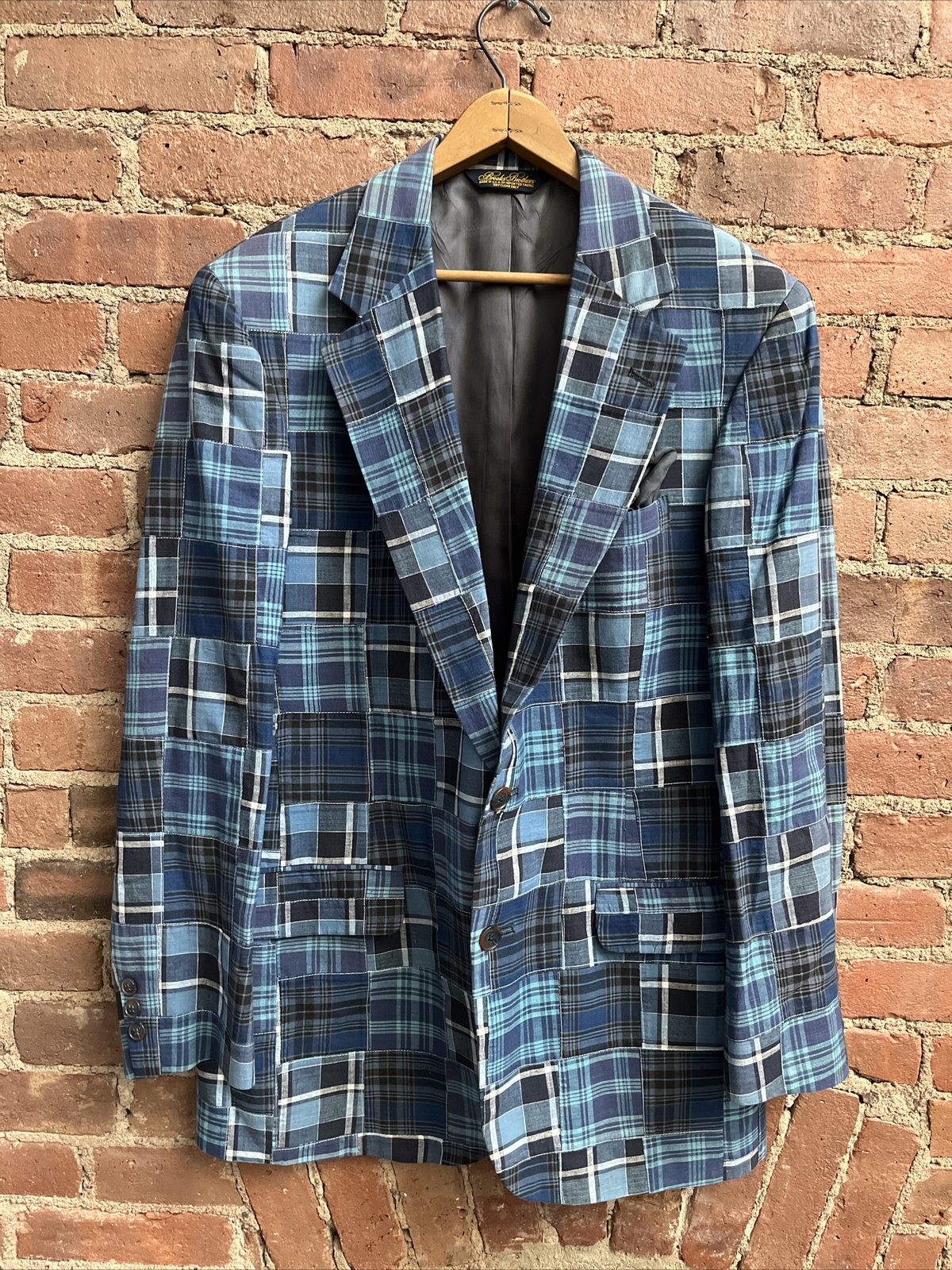 Vintage Brooks Brothers Indigo Madras, Olde Patchwork Jacket, Sz 39R, USA Eras
