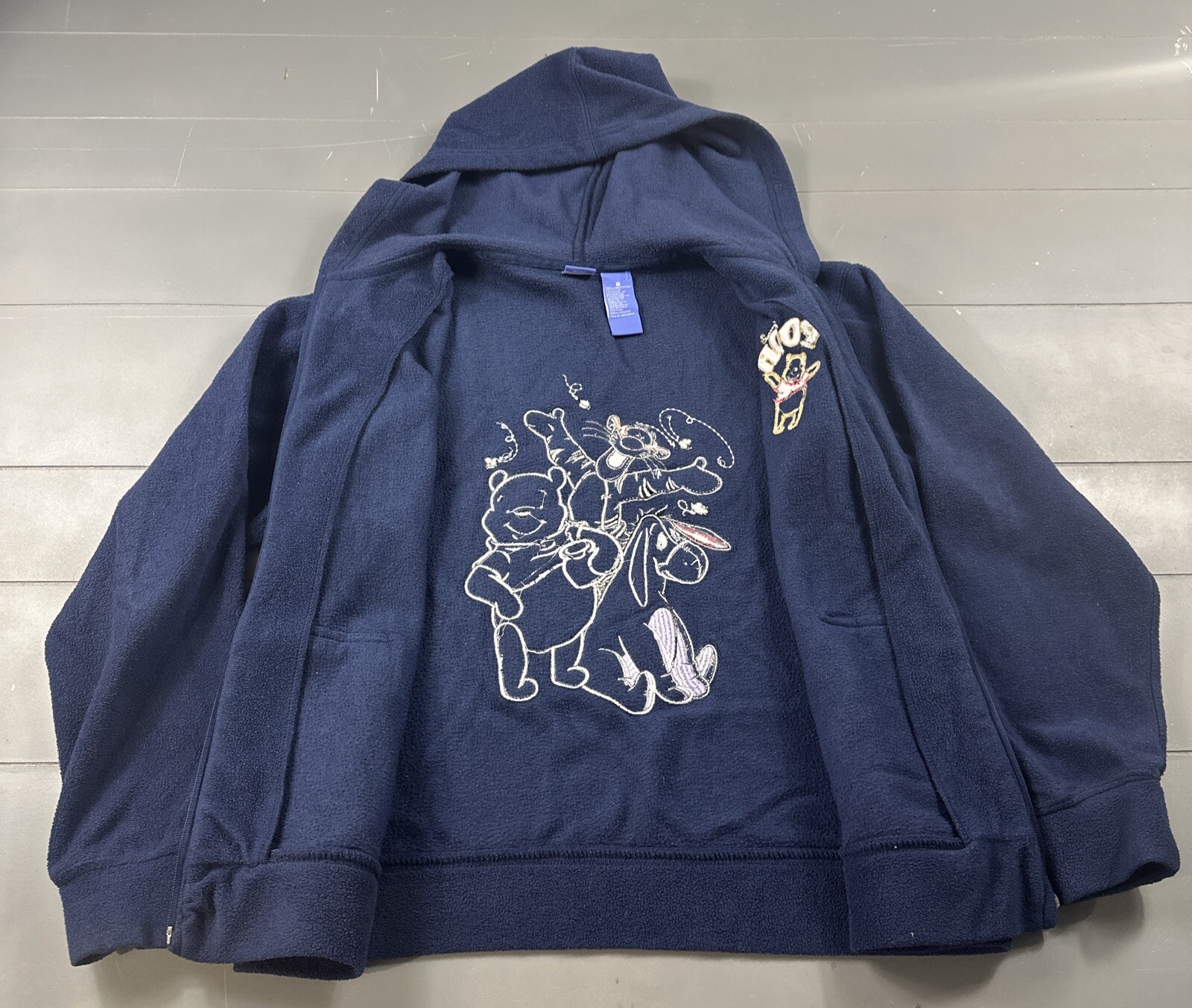 VTG Disney Winnie The Pooh Eeyore Tigger Embroidered Hoodie Sweatshirt Size S