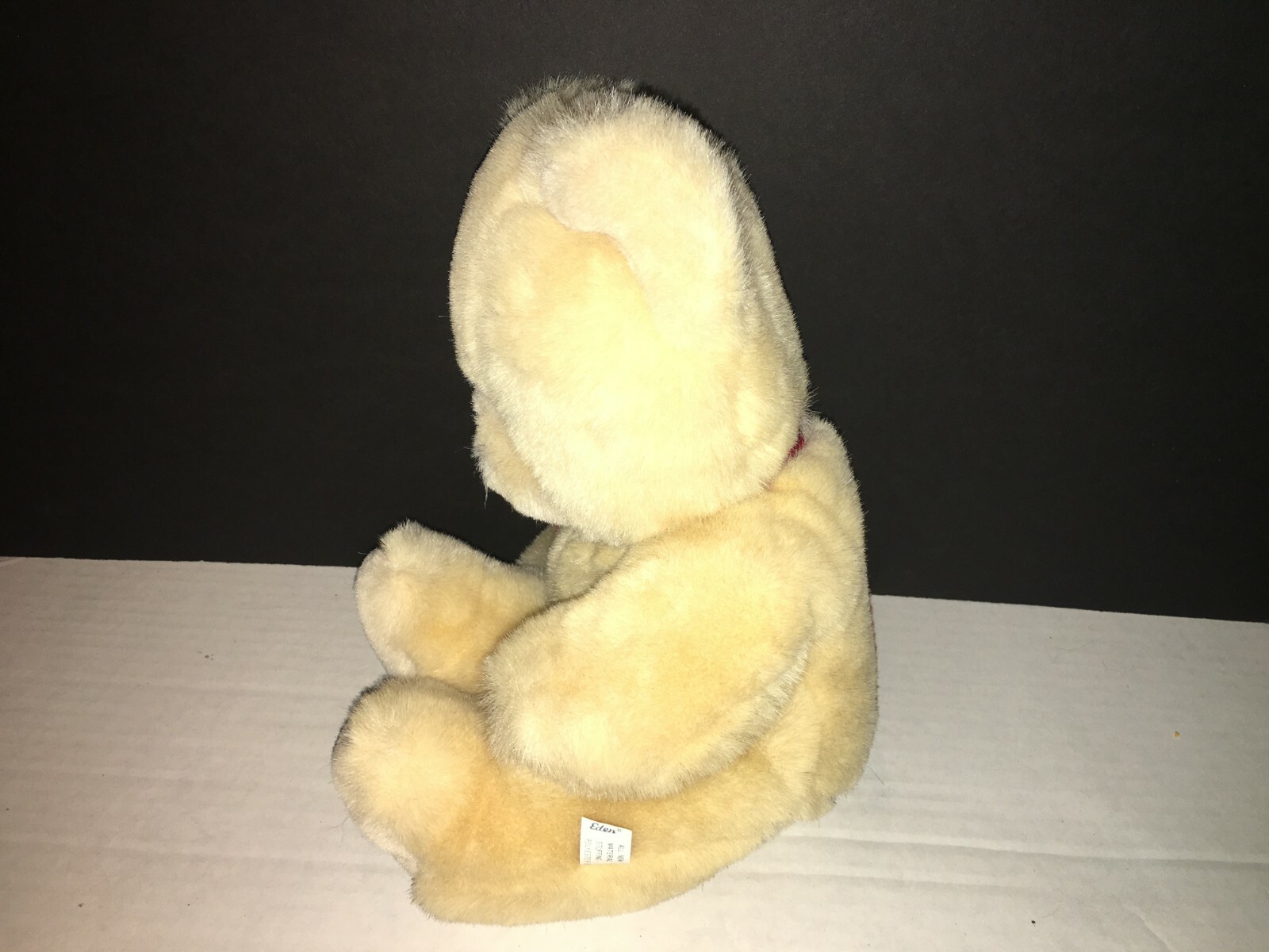 VINTAGE EDEN LIGHT TAN BLONDE TEDDY BEAR BROOKS RED RIBBON BOW 13 VERY SOFT