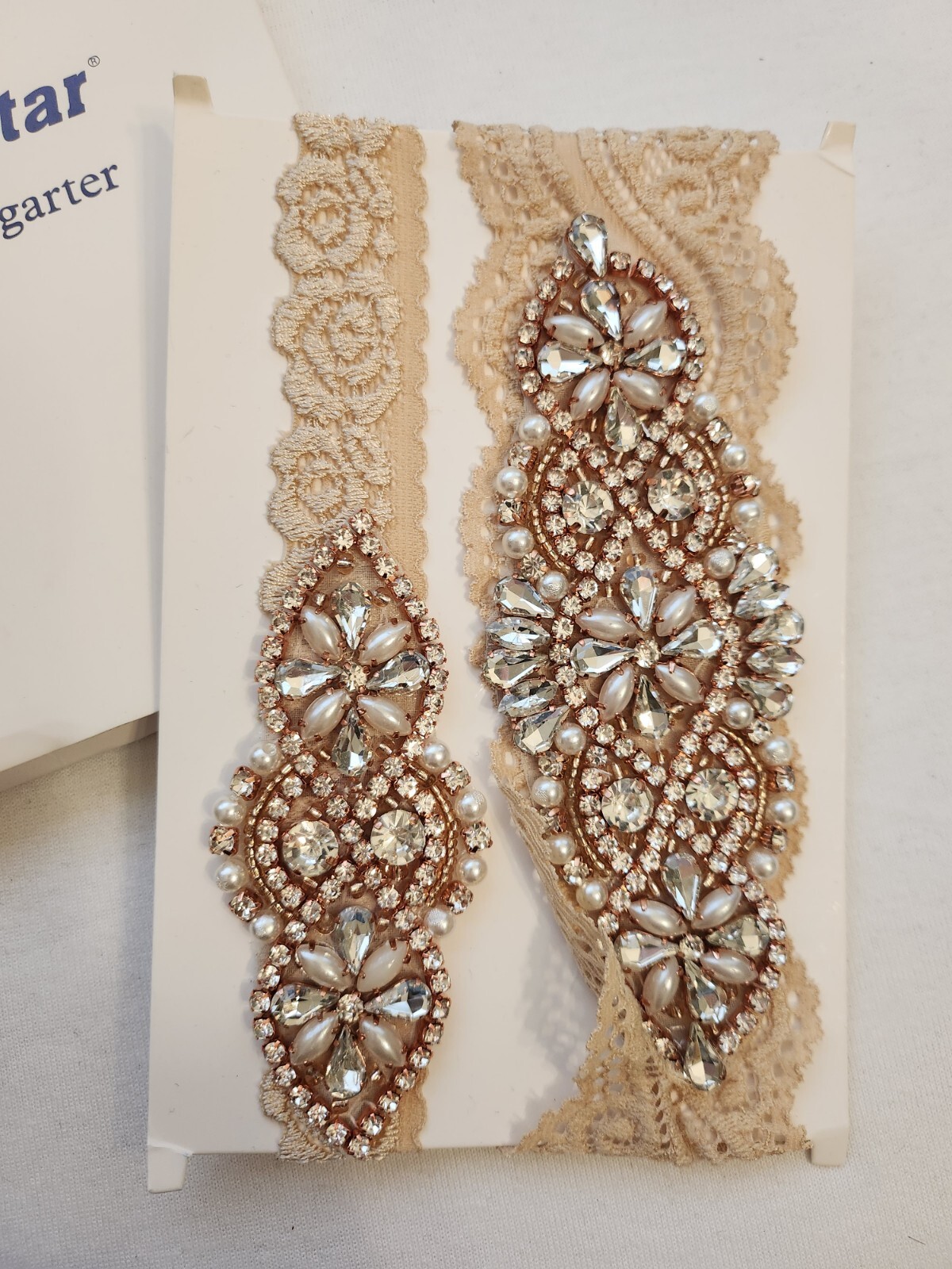 как выглядит Yanstar Wedding Bridal Garter Belt Beige Stretch Lace Set Rhinestone фото