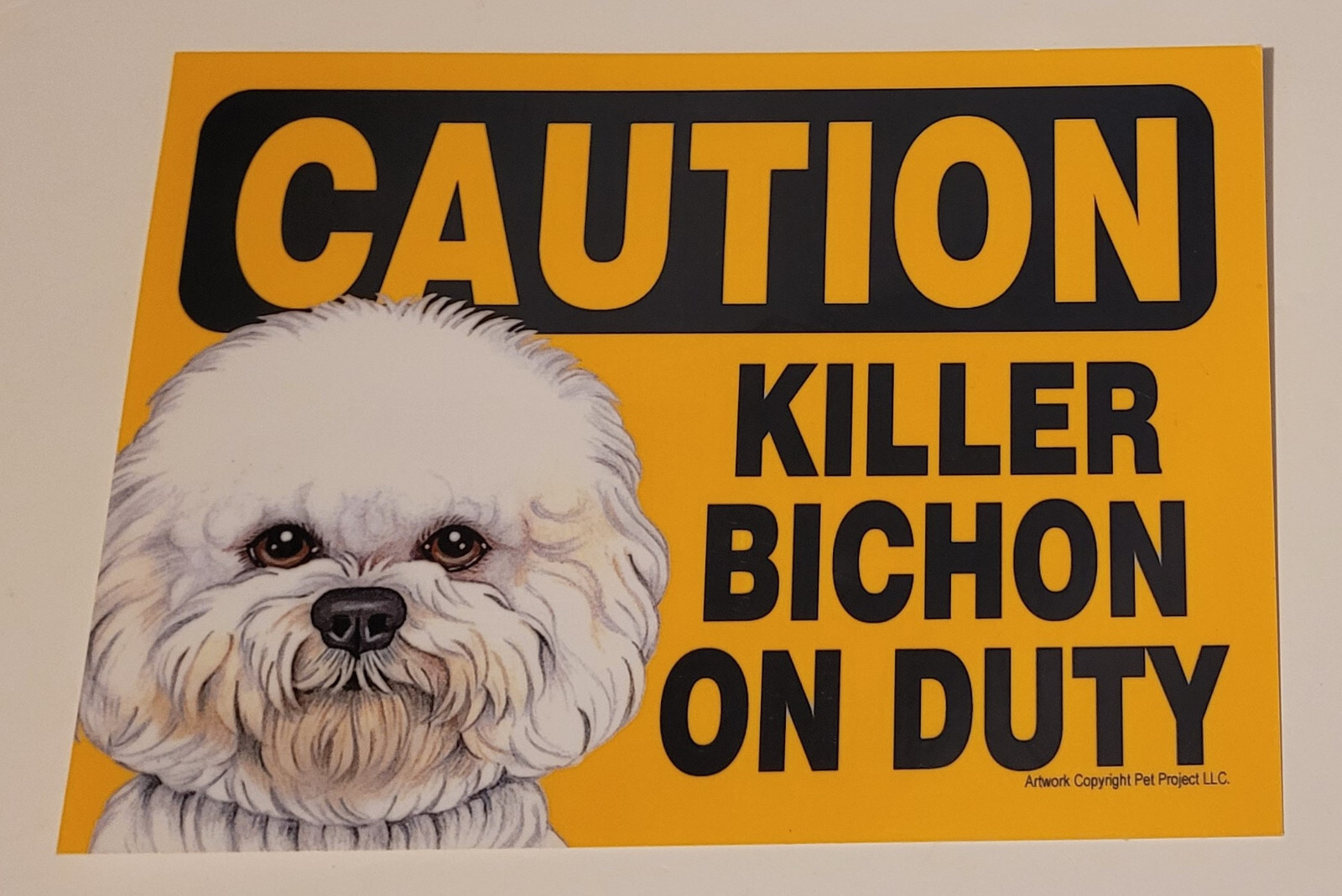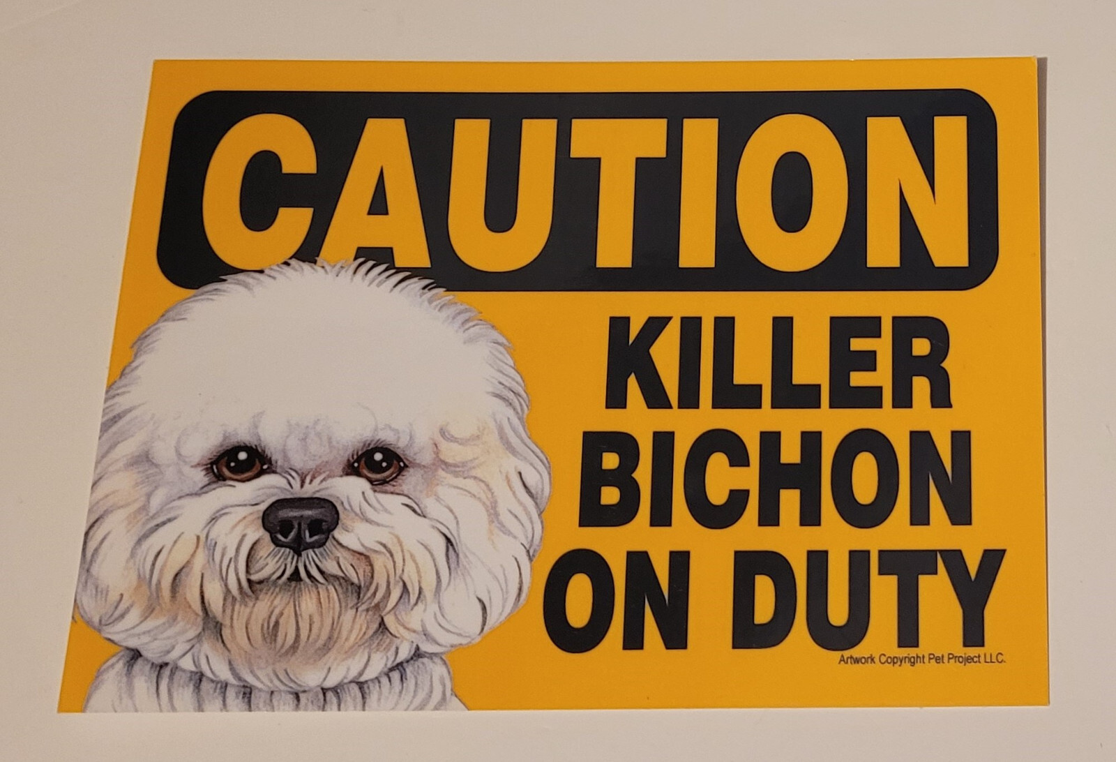 Caution Killer Bichon on Duty Express Yourself Sign 5 x 7 Magnet Tack