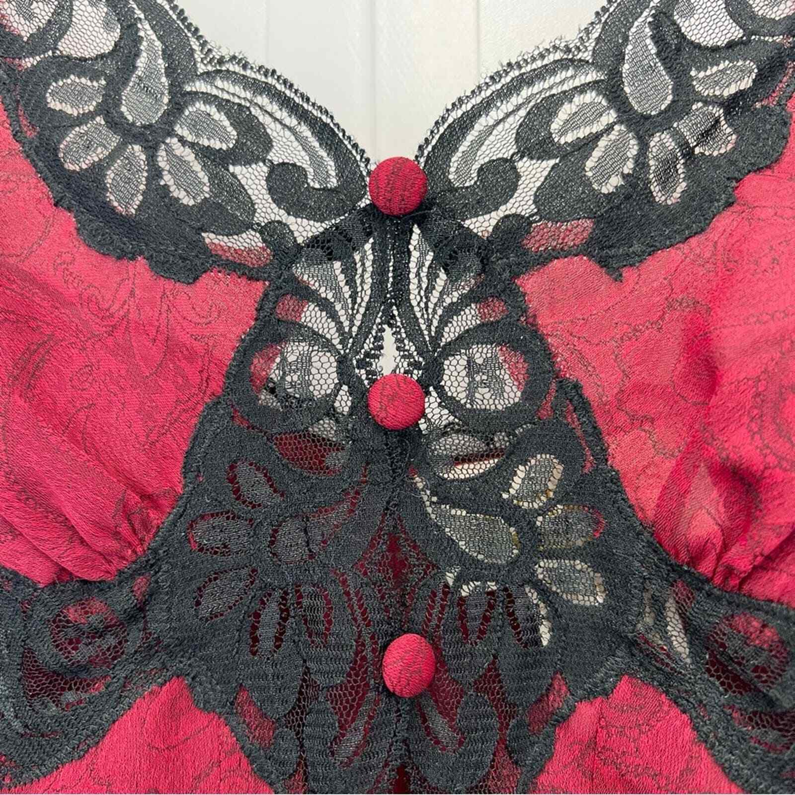 Victoria s Secret Red Black Lace Chemise Large 1980s Vintage Gold Label Paisley