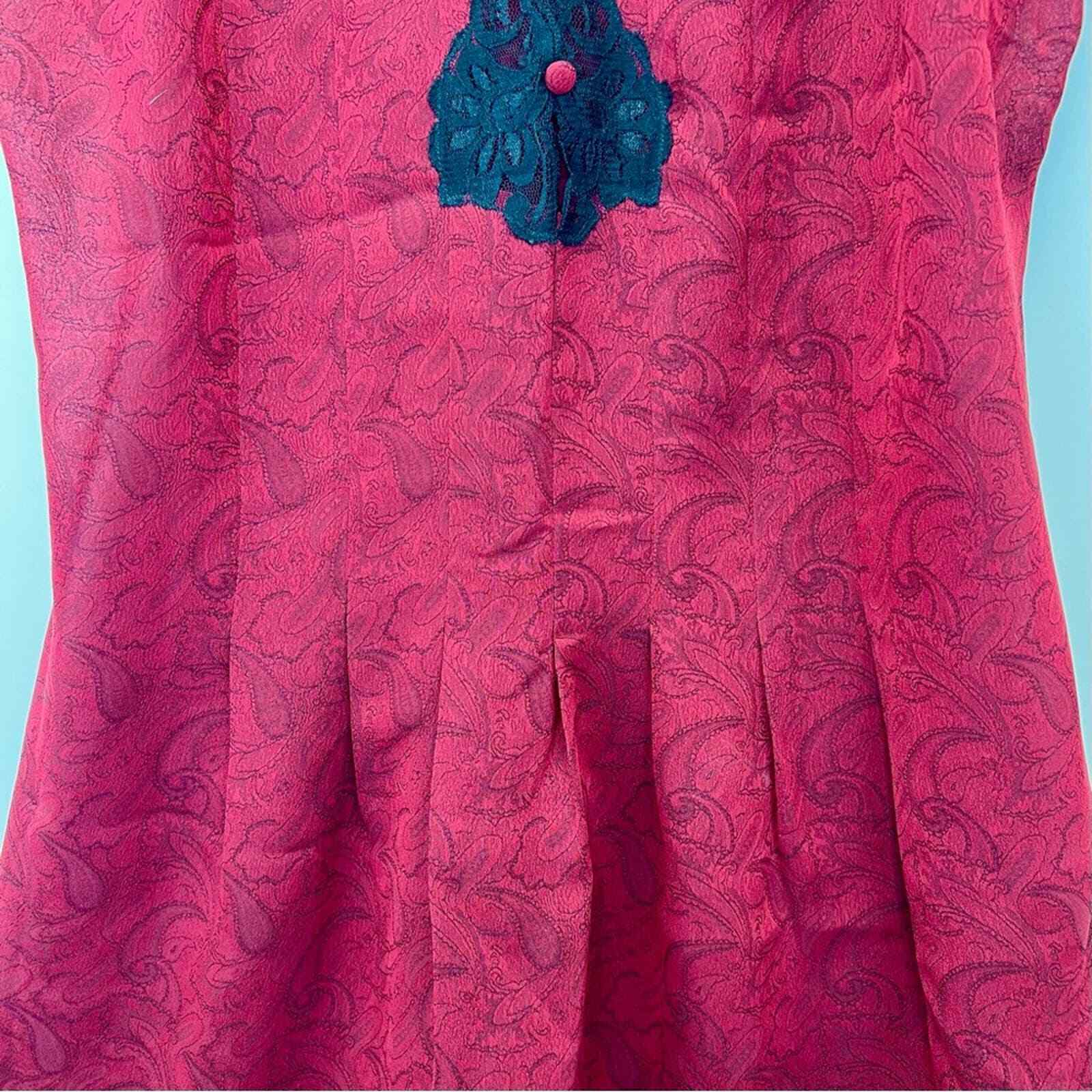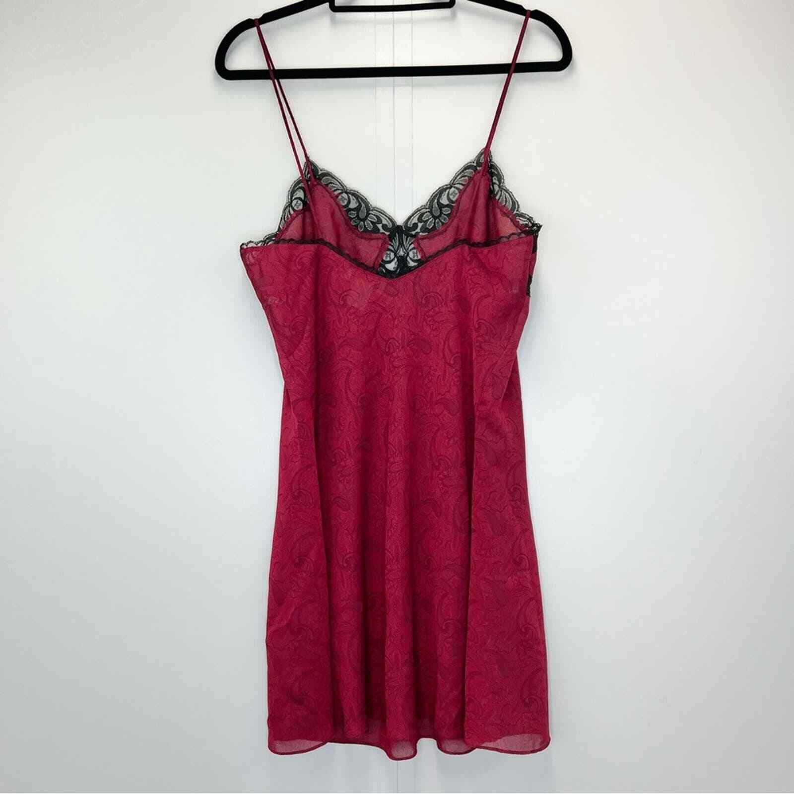 как выглядит Victoria s Secret Red Black Lace Chemise Large 1980s Vintage Gold Label Paisley фото
