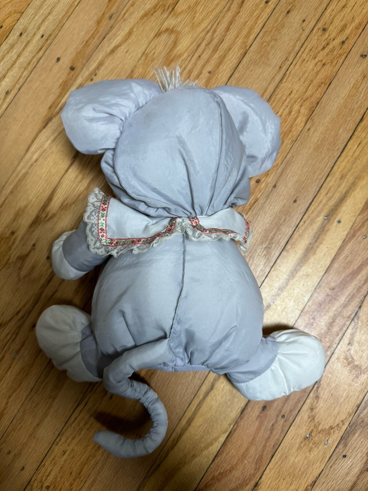 как выглядит VTG 1987 Fisher Price Puffalump Gray Christmas Mouse Plush Candy Cane Holly фото