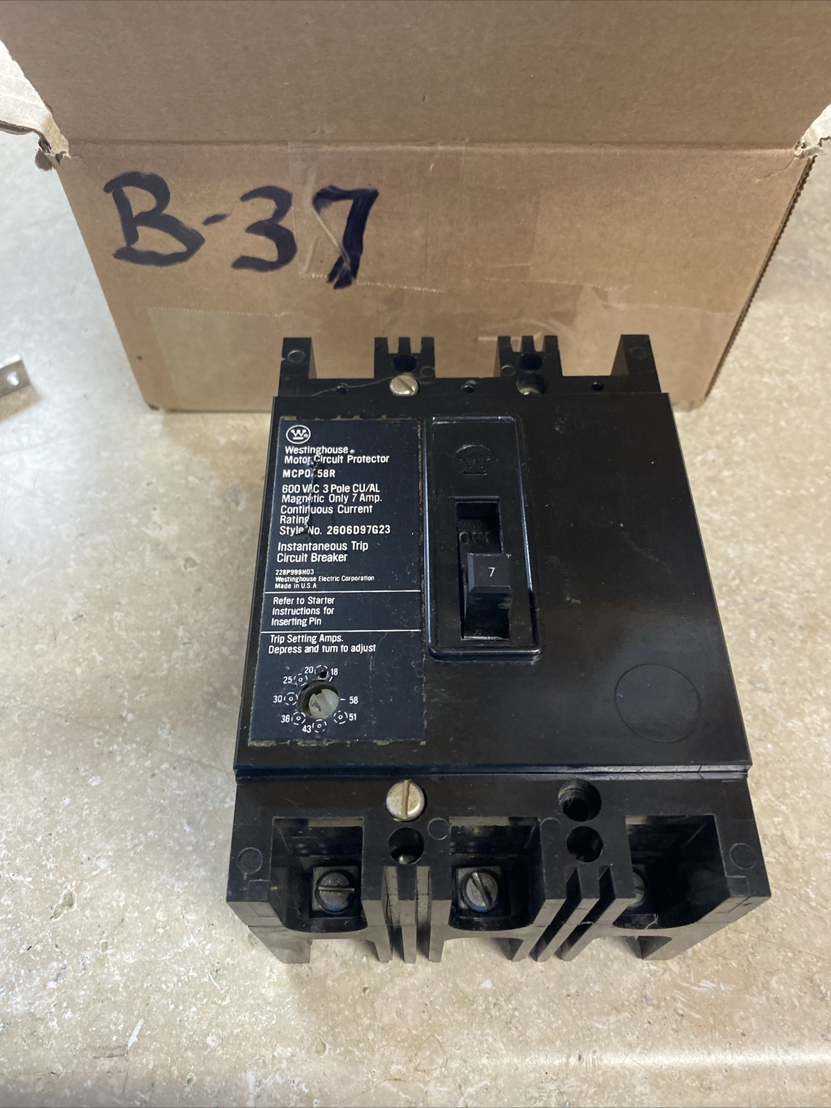 Westinghouse MCP0358R Circuit Breaker 7 AMP 3 POLE 600 VAC