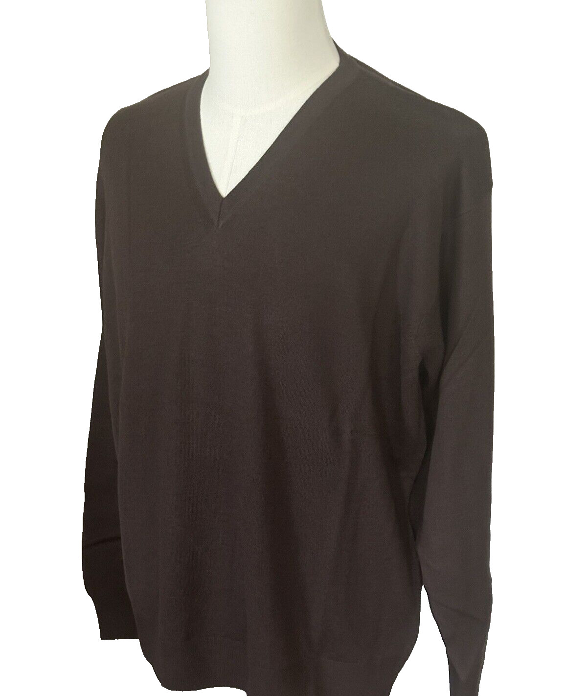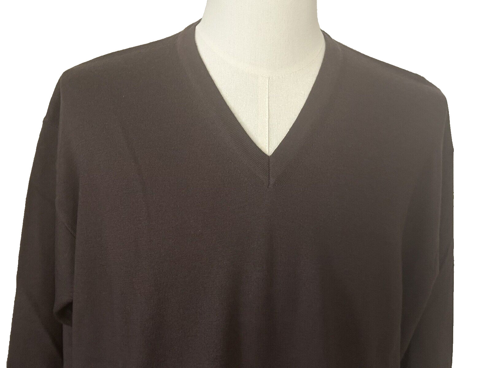 как выглядит Mens XL Extra Fine Merino Wool Polo Shirt Sweater L/S Chocolate Italy NWT фото