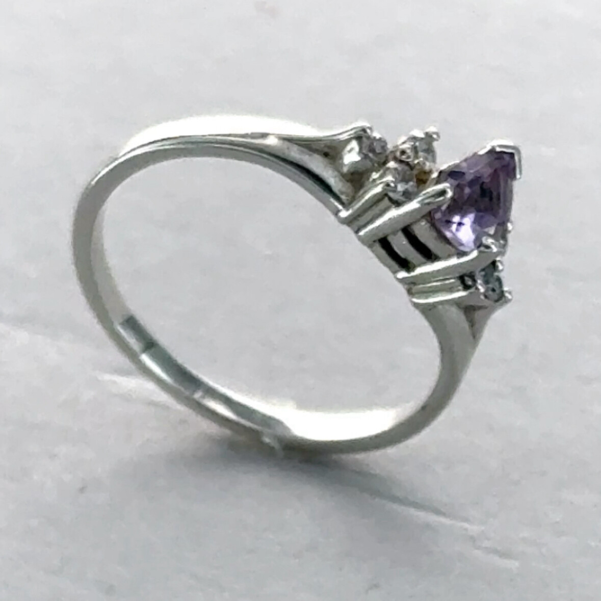 Natural AMETHYST Ring with 6 CZs - Multiple Sizes - 925 STERLING SILVER 1e