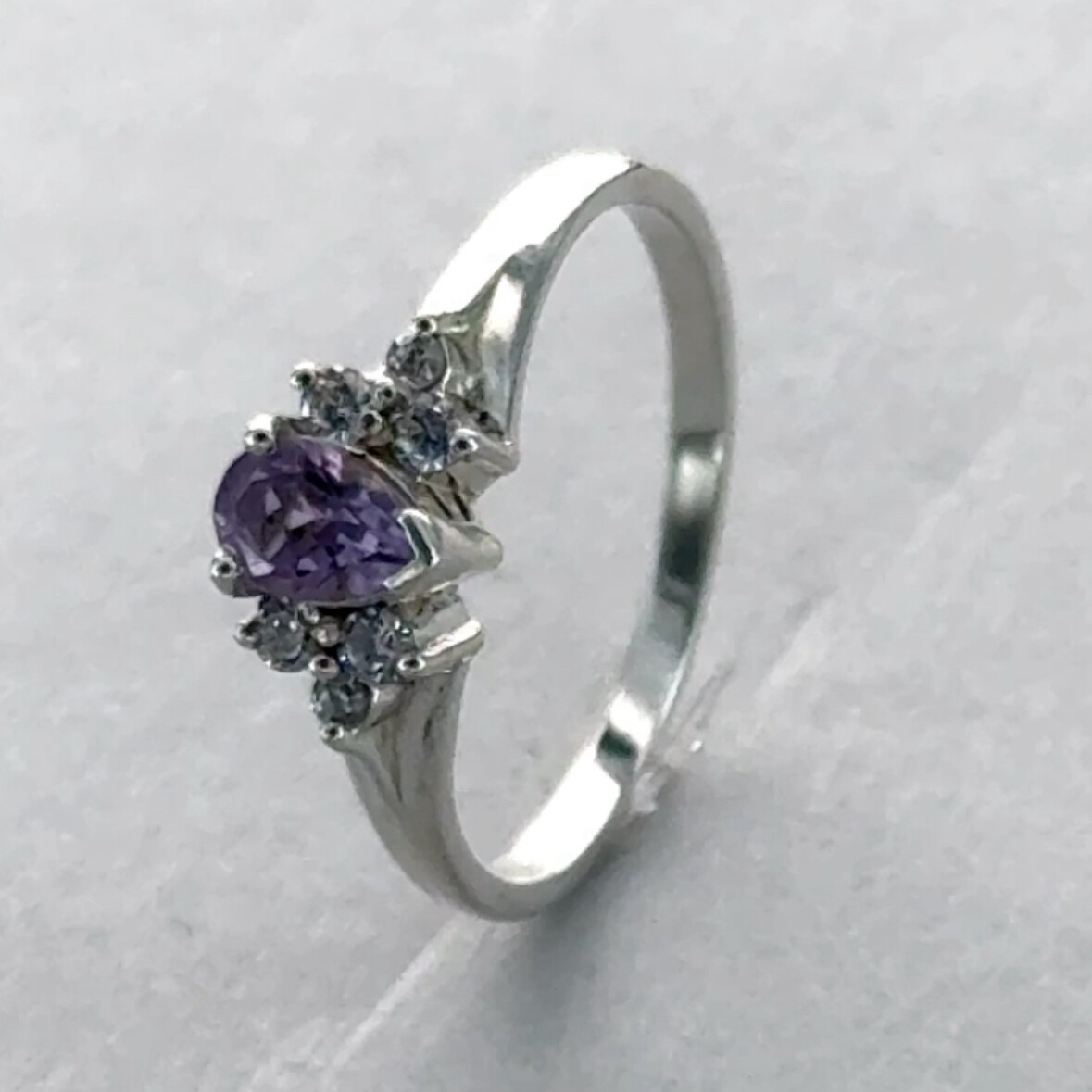 как выглядит Natural AMETHYST Ring with 6 CZs - Multiple Sizes - 925 STERLING SILVER 1e фото