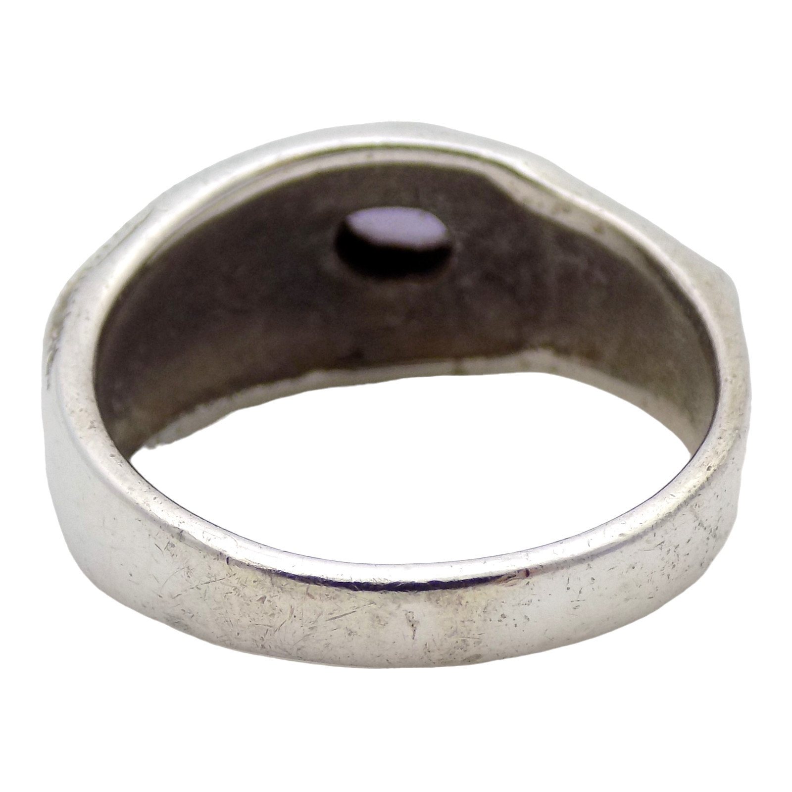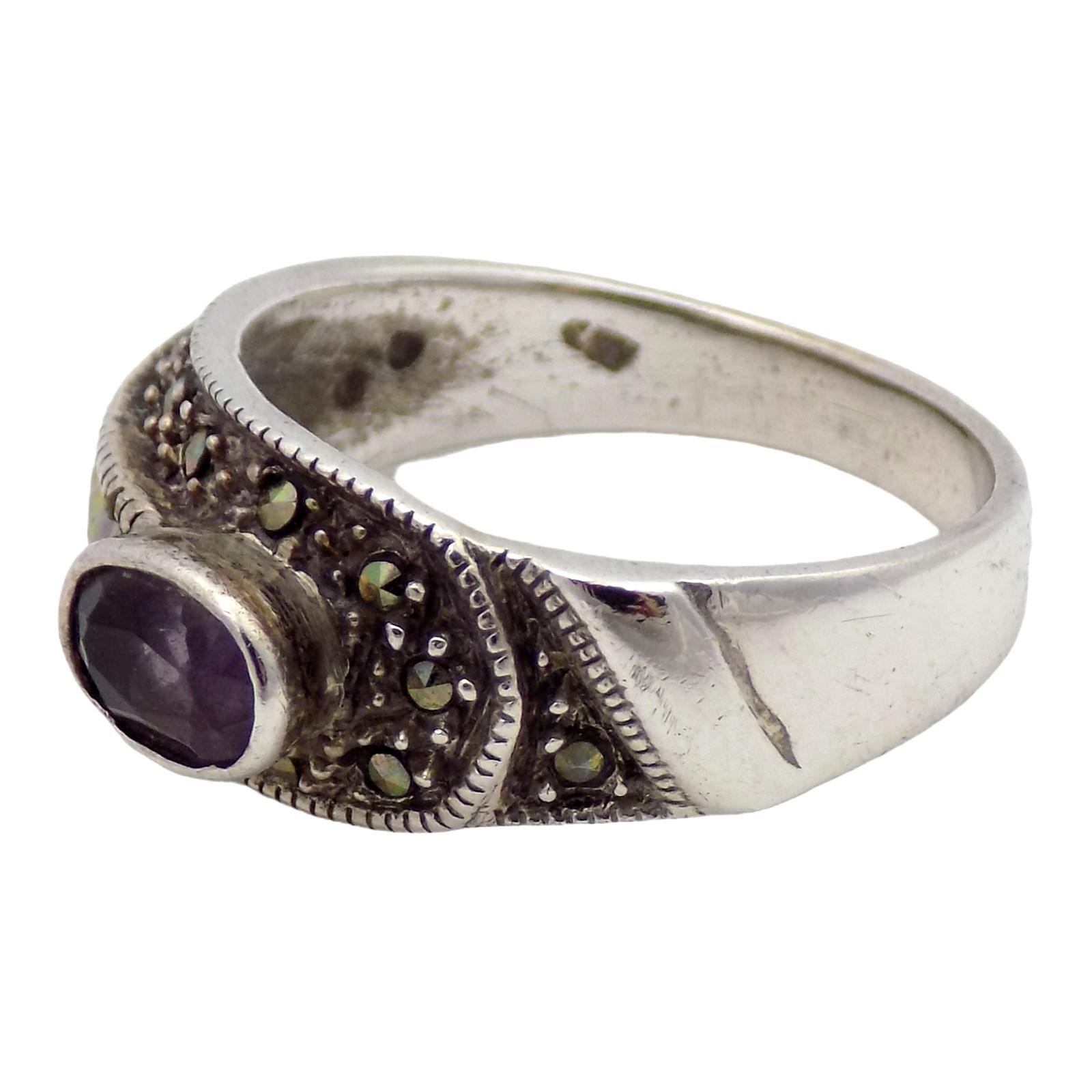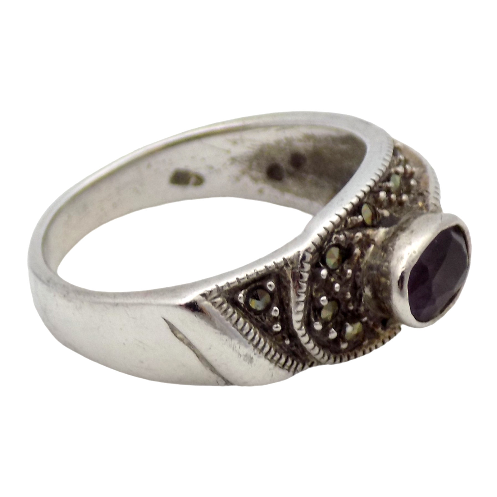 как выглядит SIGNED STERLING LAB MADE AMETHYST NAT. MARCASITE SZ:8 RING 5.2GR 3374 фото