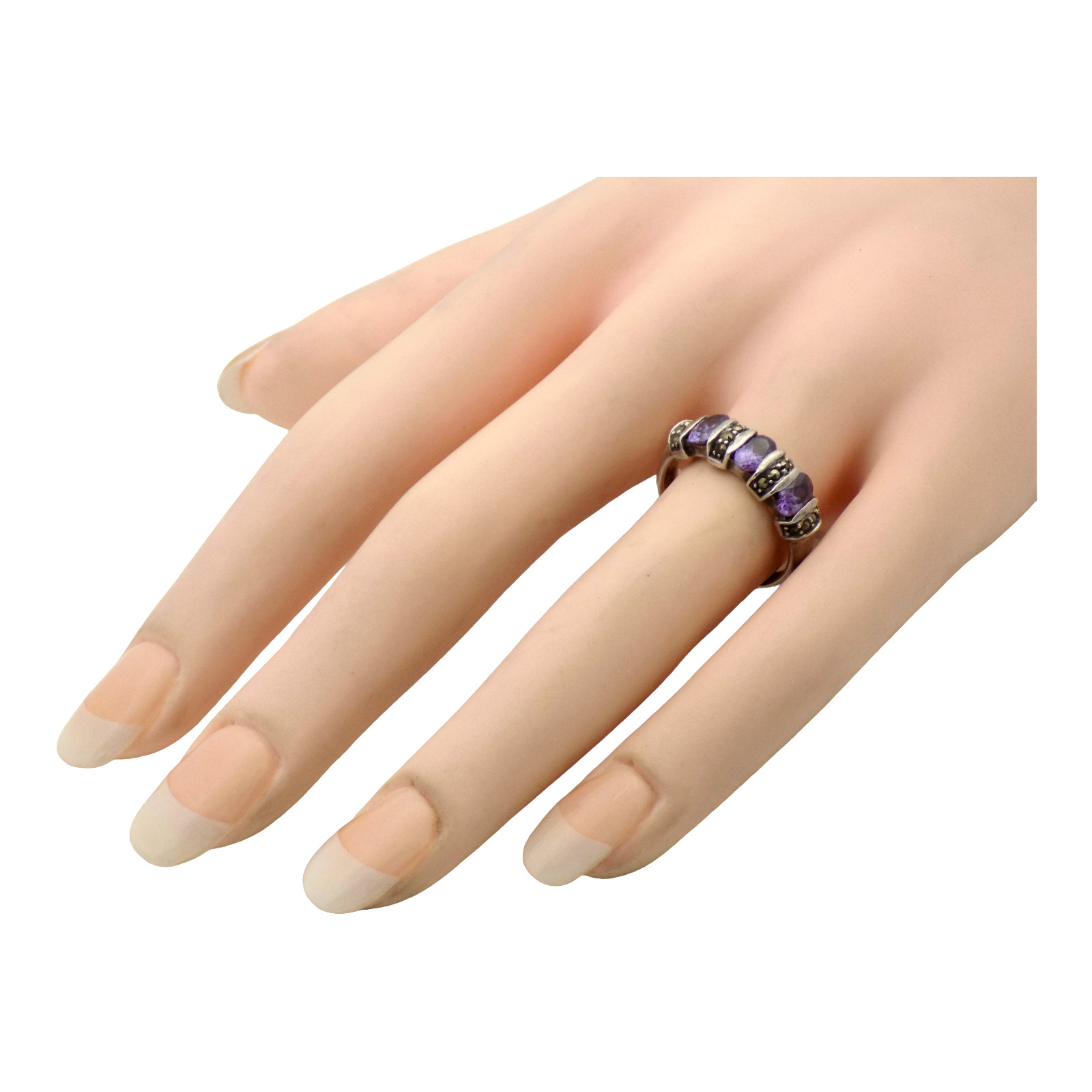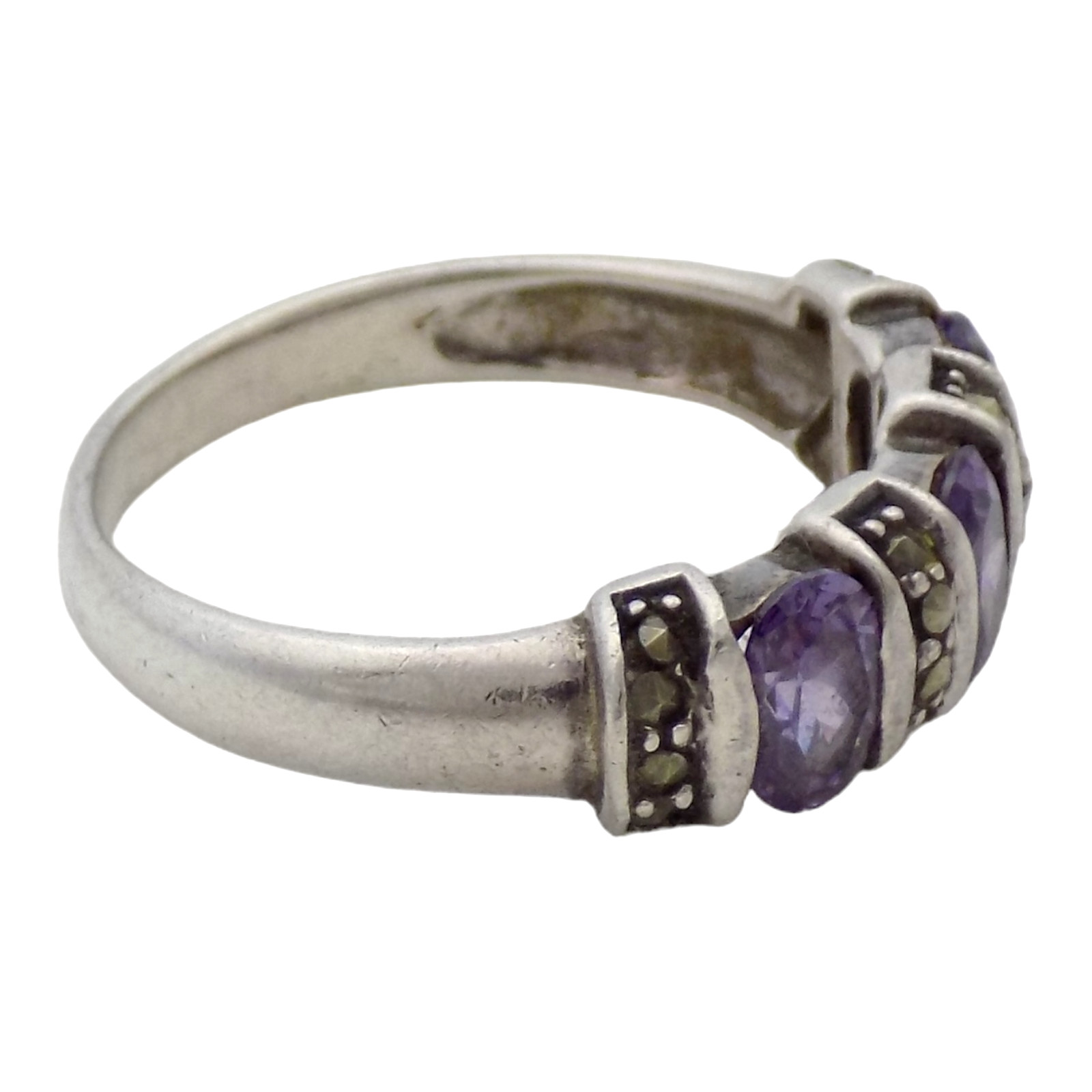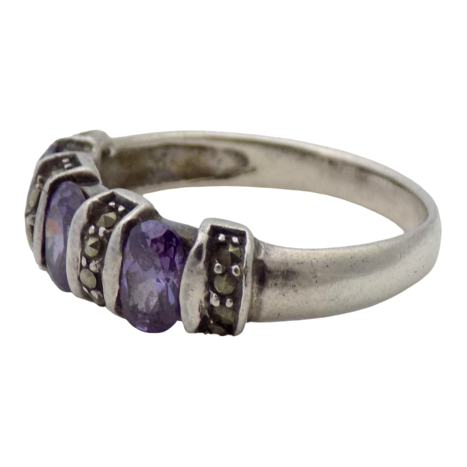 как выглядит STERLING SILVER LAB MADE AMETHYST MARCASITE SIZE:8 RING 3.8GR 3410 фото