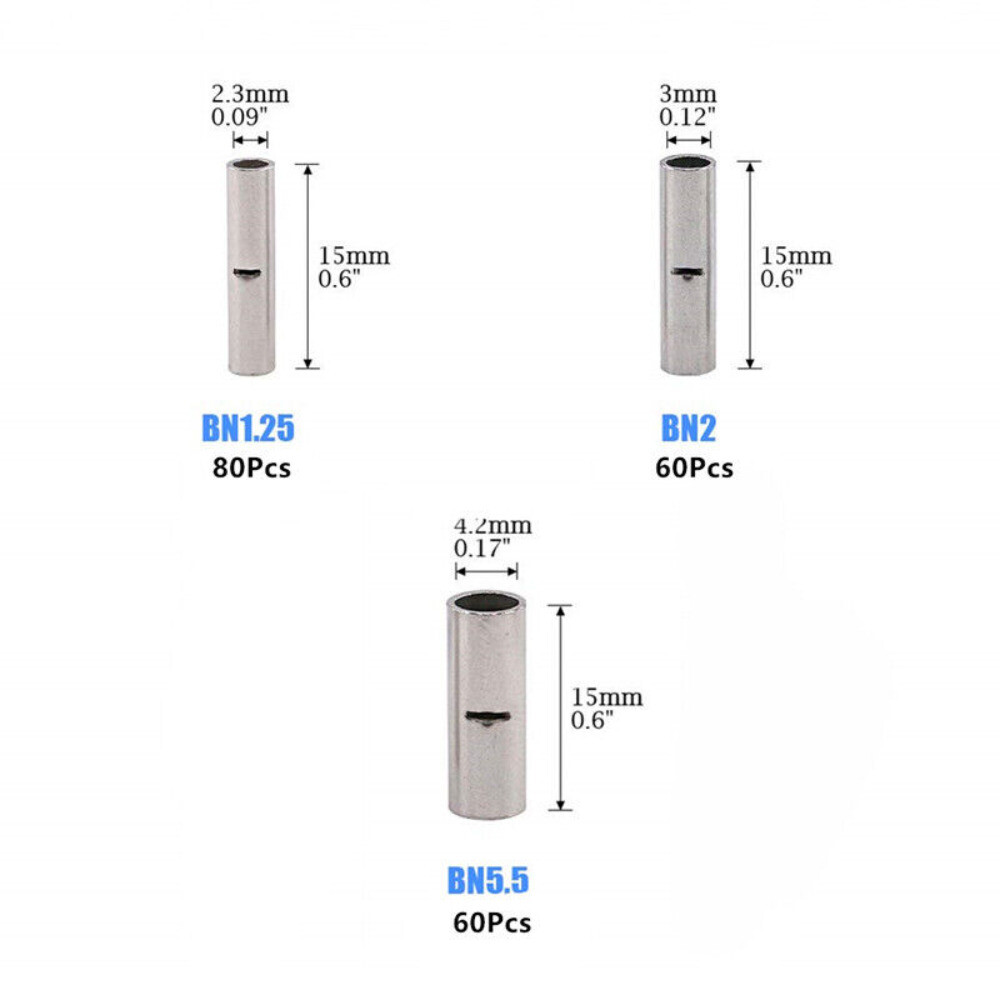 200Pcs Copper Bare Wire Splice Terminals Ferrule Butt Crimp Connectors 22-10 AWG