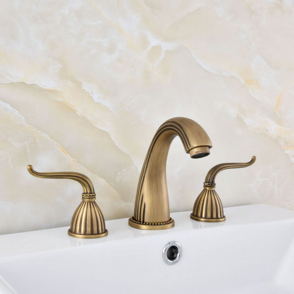 Antique Brass Widespread 3 Holes Bathroom Sink Basin Faucet Water Tap ssf631