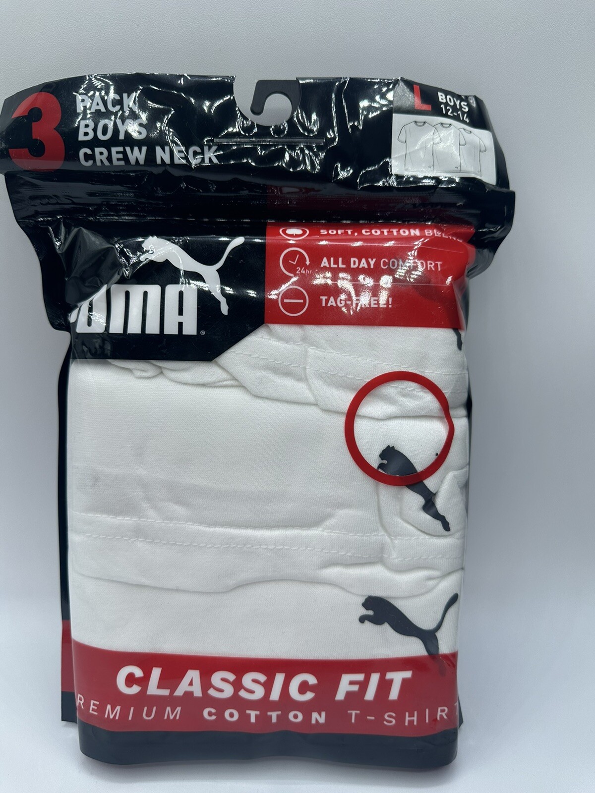 как выглядит PUMA Boys Classic Crew Neck T-Shirt 3 Pack BOYS LARGE 12-14 фото