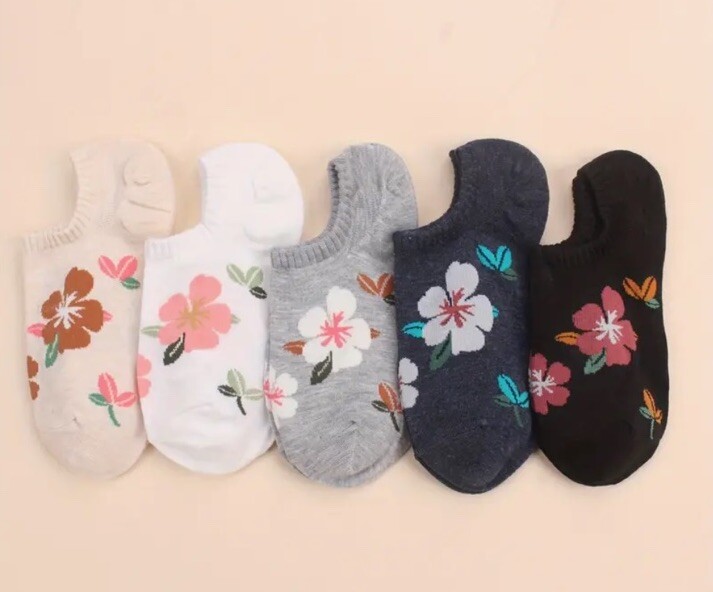 как выглядит Womens Colorful Floral Print Pattern No Show Low Ankle Fashion Sock Set Of 5 фото