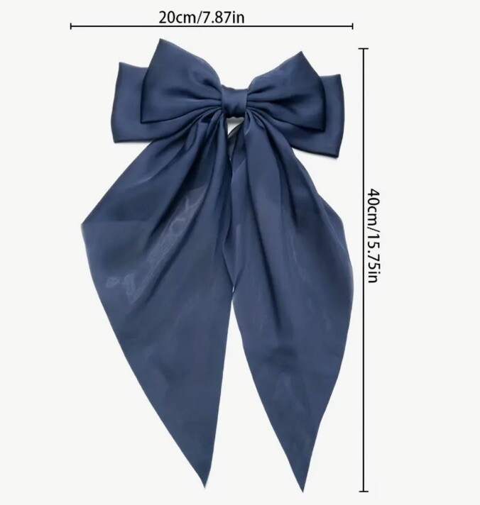 как выглядит Gray Satin Stylish Bow Big Ribbon Bow Knot Hair Clip All Hair Types Non Slip фото