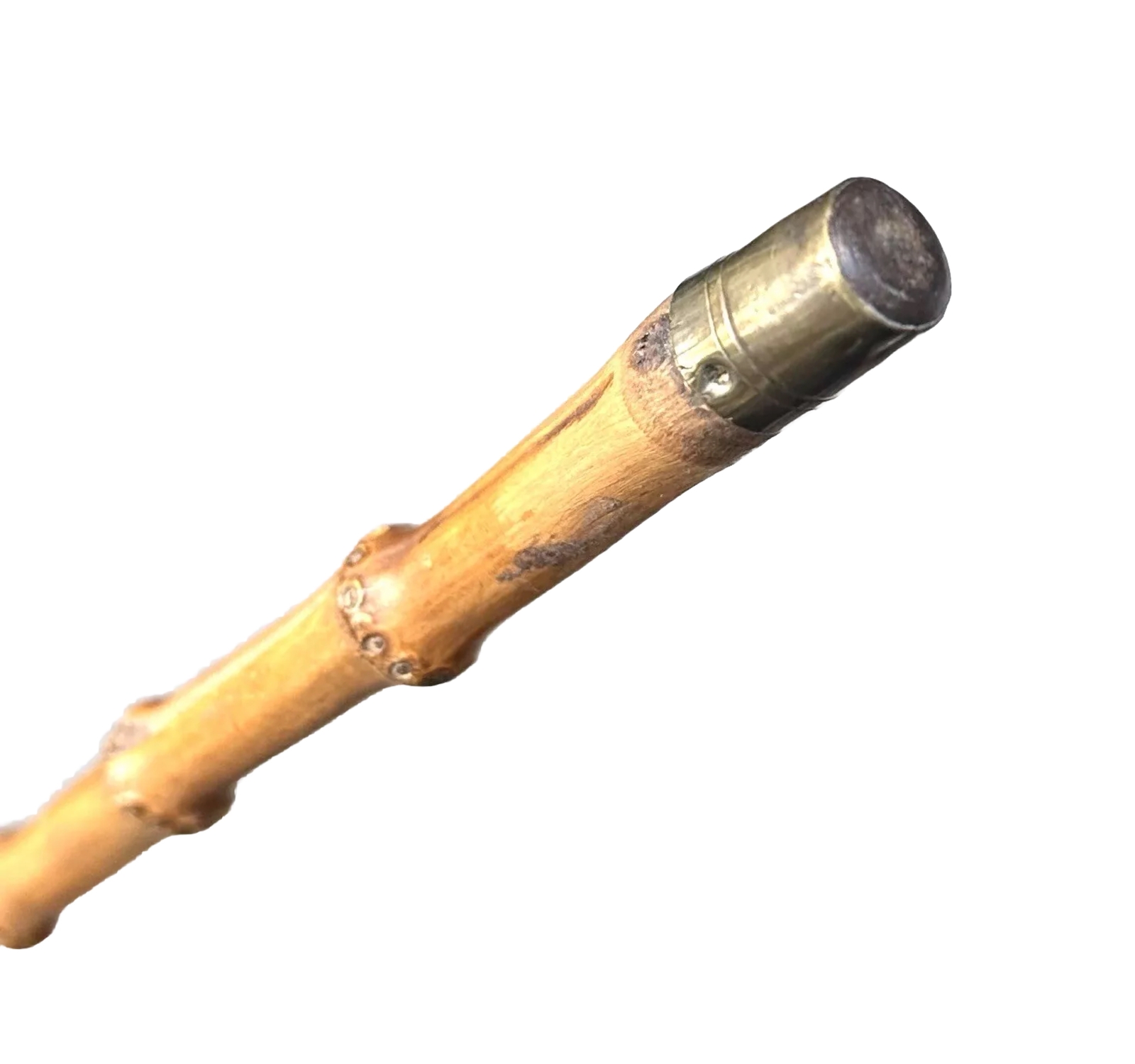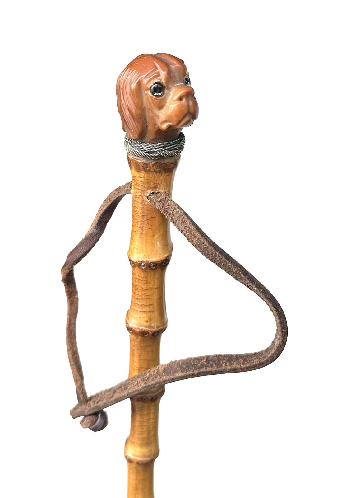 Vintage Antique Carved Wood Dog Head Bamboo Swagger Knob Walking Stick Cane