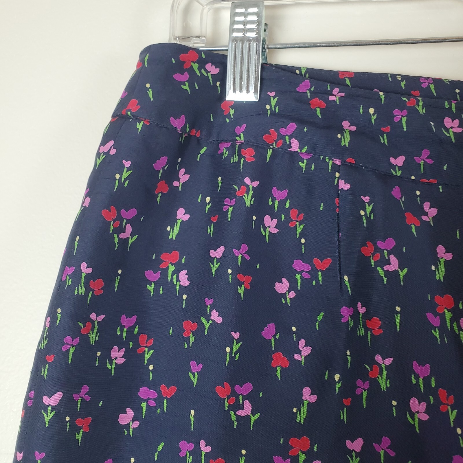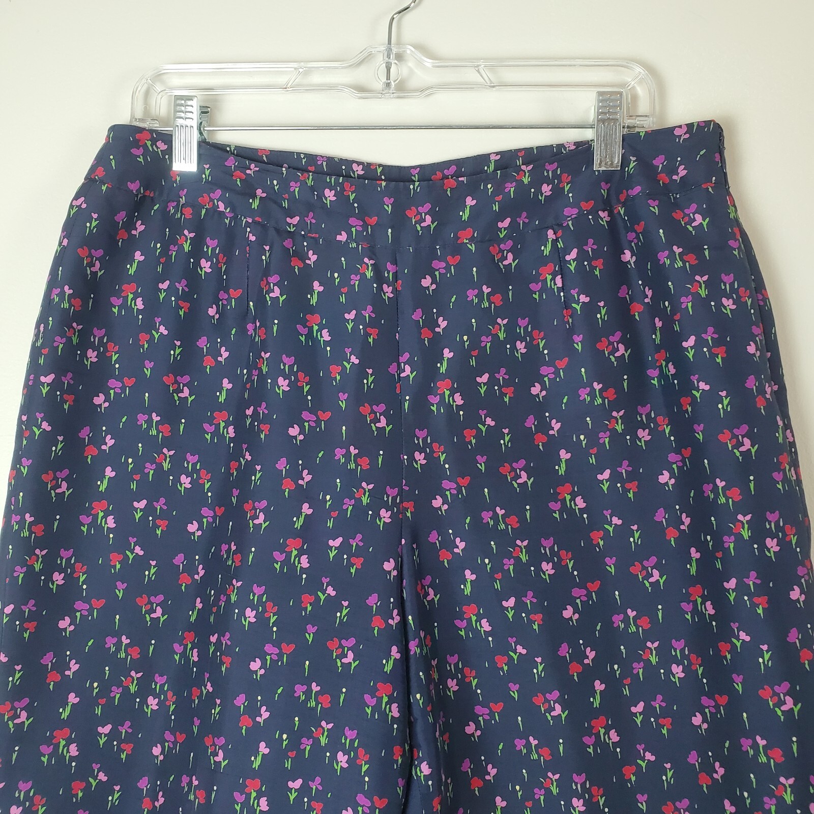 Vintage Liz Claiborne 100 silk Pants Womens 14 Ditzy Blue floral tapered leg