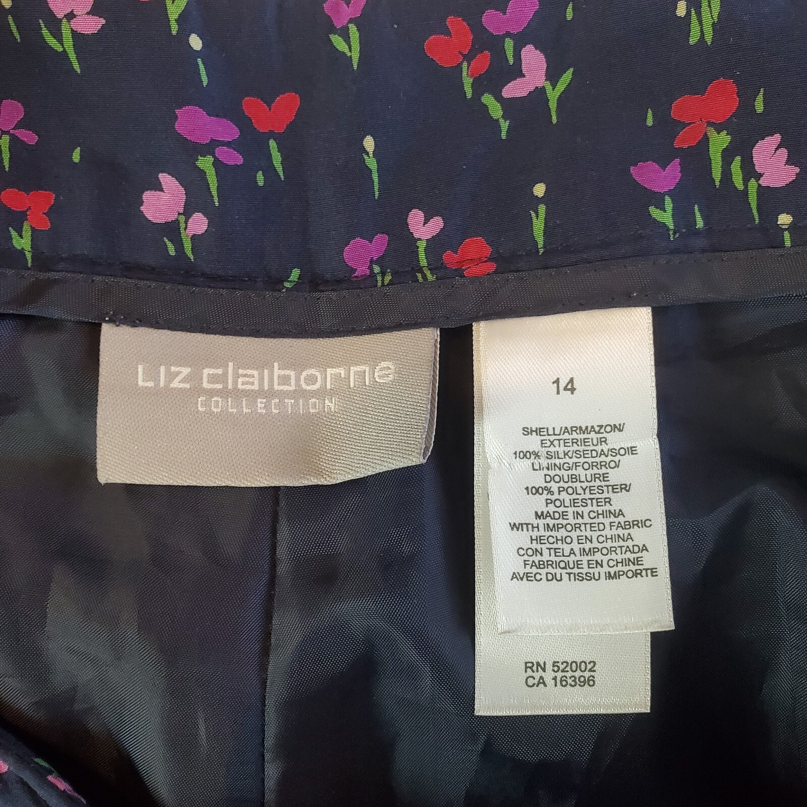 как выглядит Vintage Liz Claiborne 100 silk Pants Womens 14 Ditzy Blue floral tapered leg фото