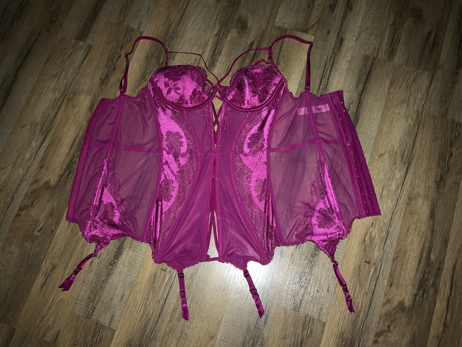 как выглядит VICTORIA s SECRET Lingerie Hibiscus  Lace GARTER BUSTIER CORSET Bra Sz-34C фото