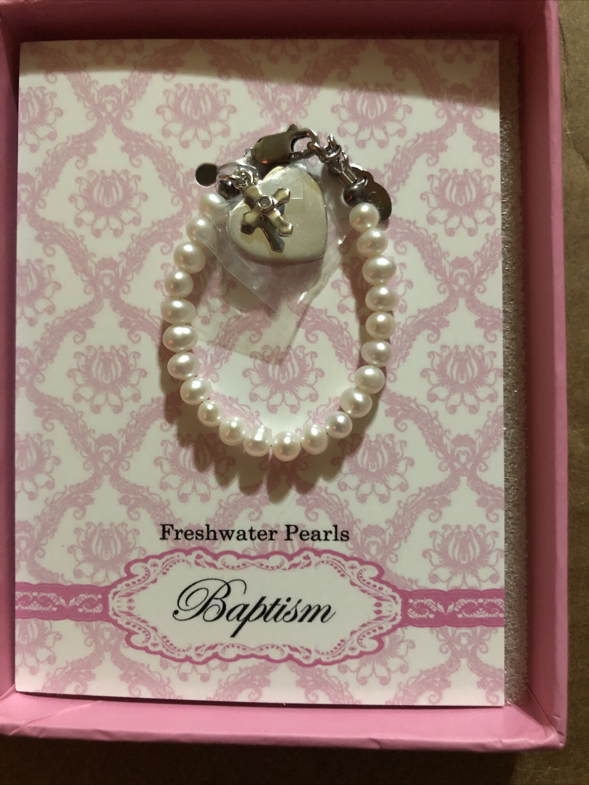 как выглядит USA STERLING SILVER FRESHWATER PEARLS BAPTISM BABY CHARM BRACELET фото