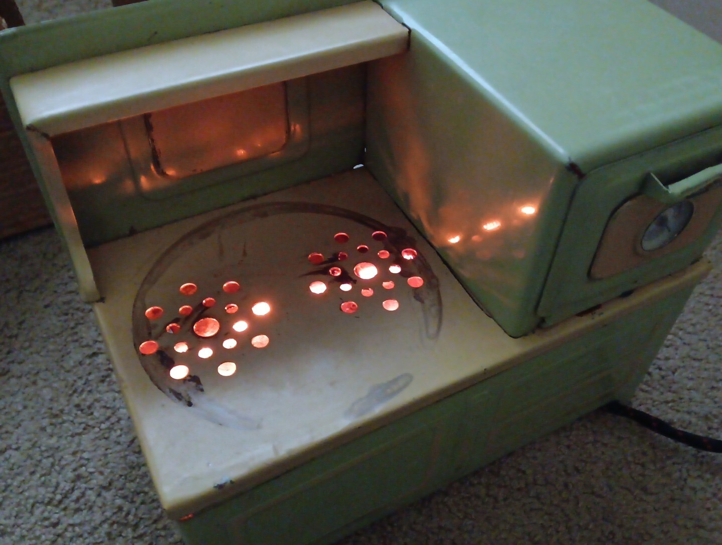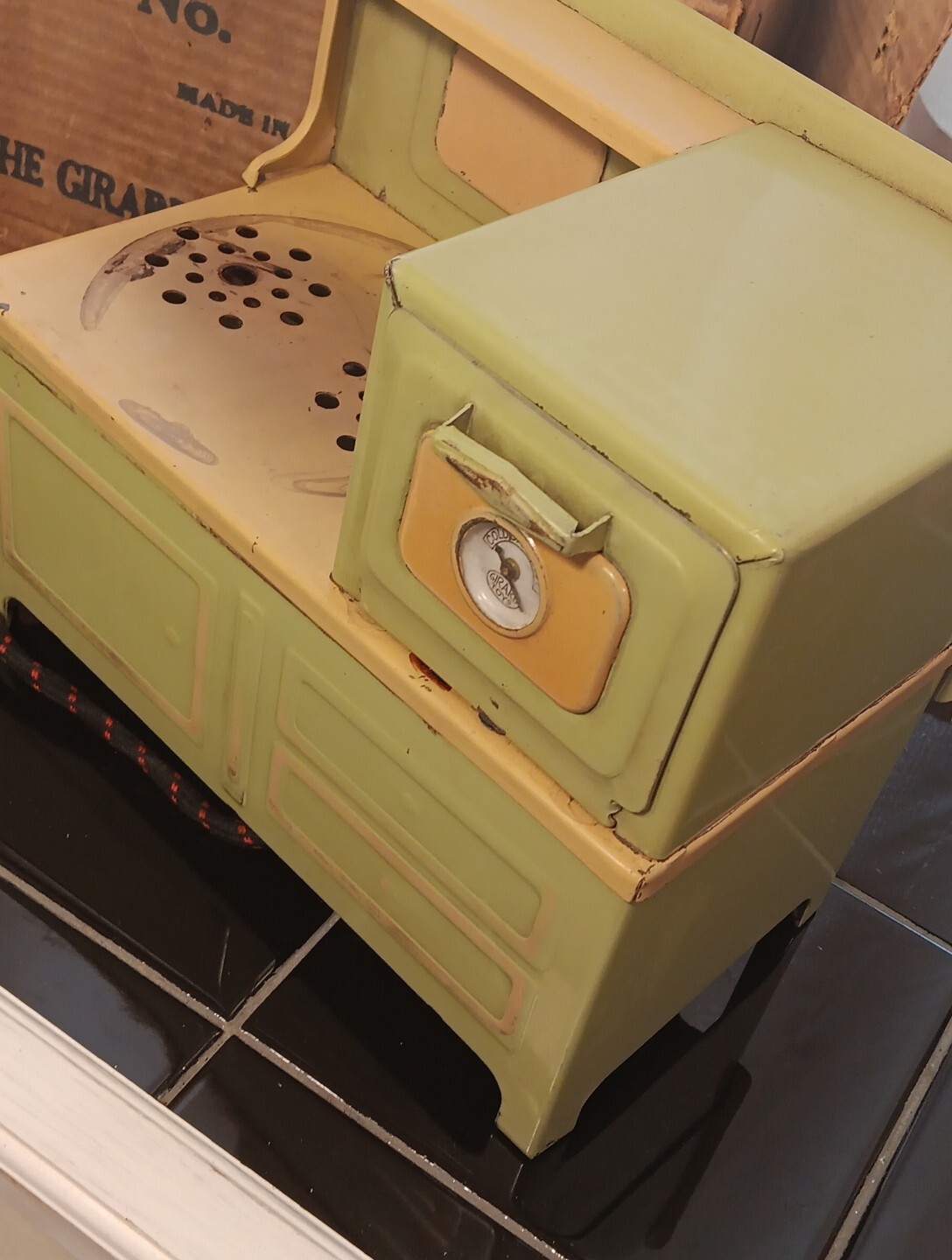 GIRARD TOYS Metal Electric Stove Oven w/Gauge Green W/ Rare Original Box Works