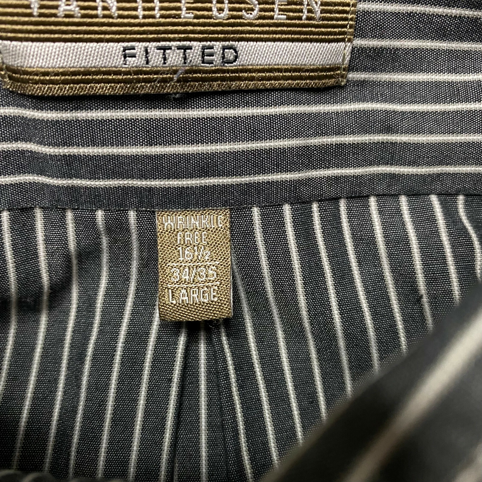 как выглядит Van Heusen Mens Dress Shirt sz L Dark Gray Striped Wrinkle Free Fitted Stretch фото