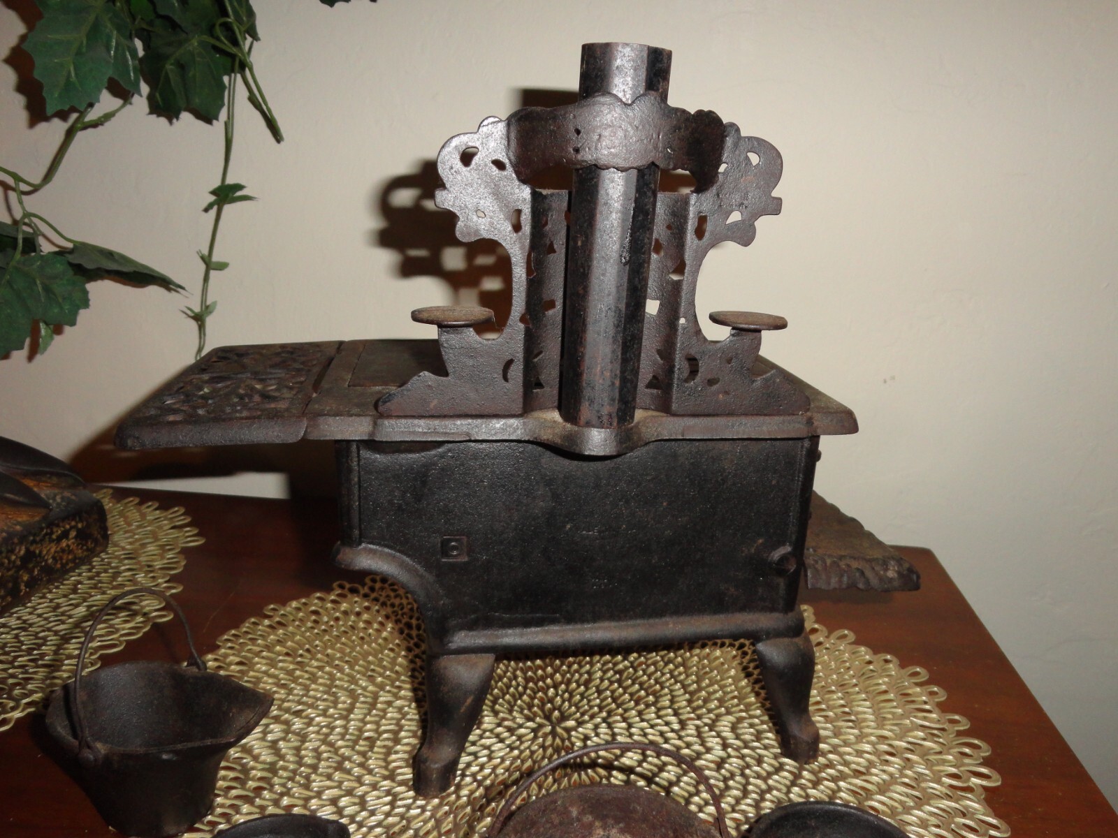 • Mini Cast Iron Wood Cooking Stove Pots Pans ANTIQUE Crescent SALESMAN Sample