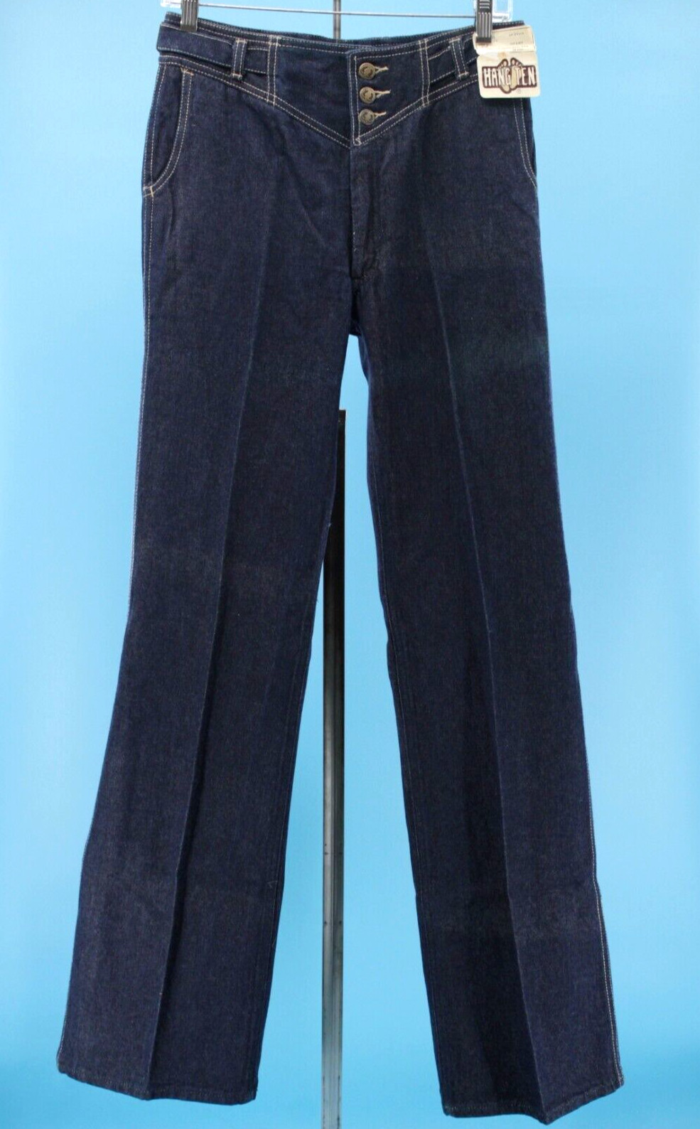 VTG Women's 70s NOS Dark Denim Hang Ten Jeans W/ Side Buckles Sz 31 1970s