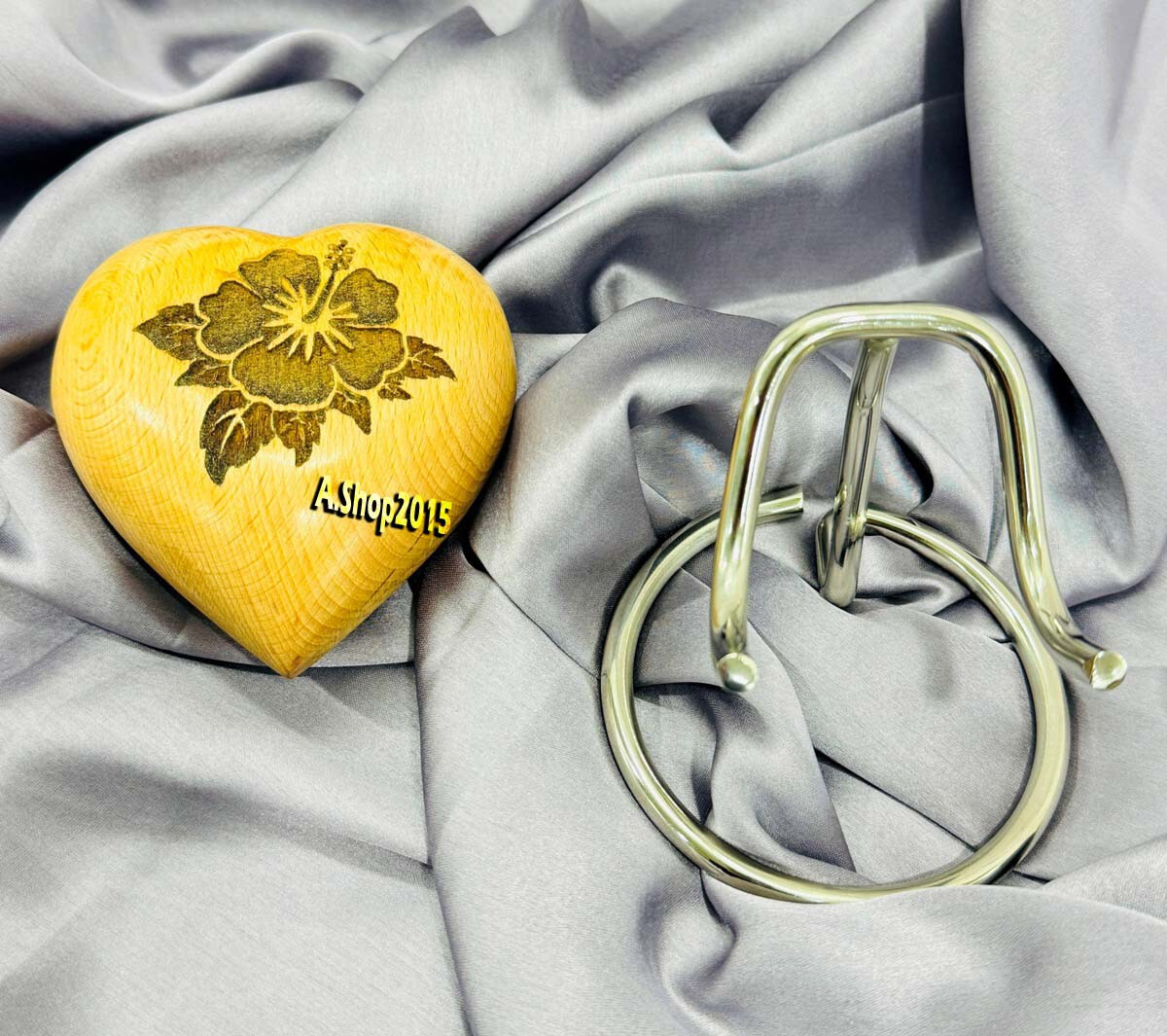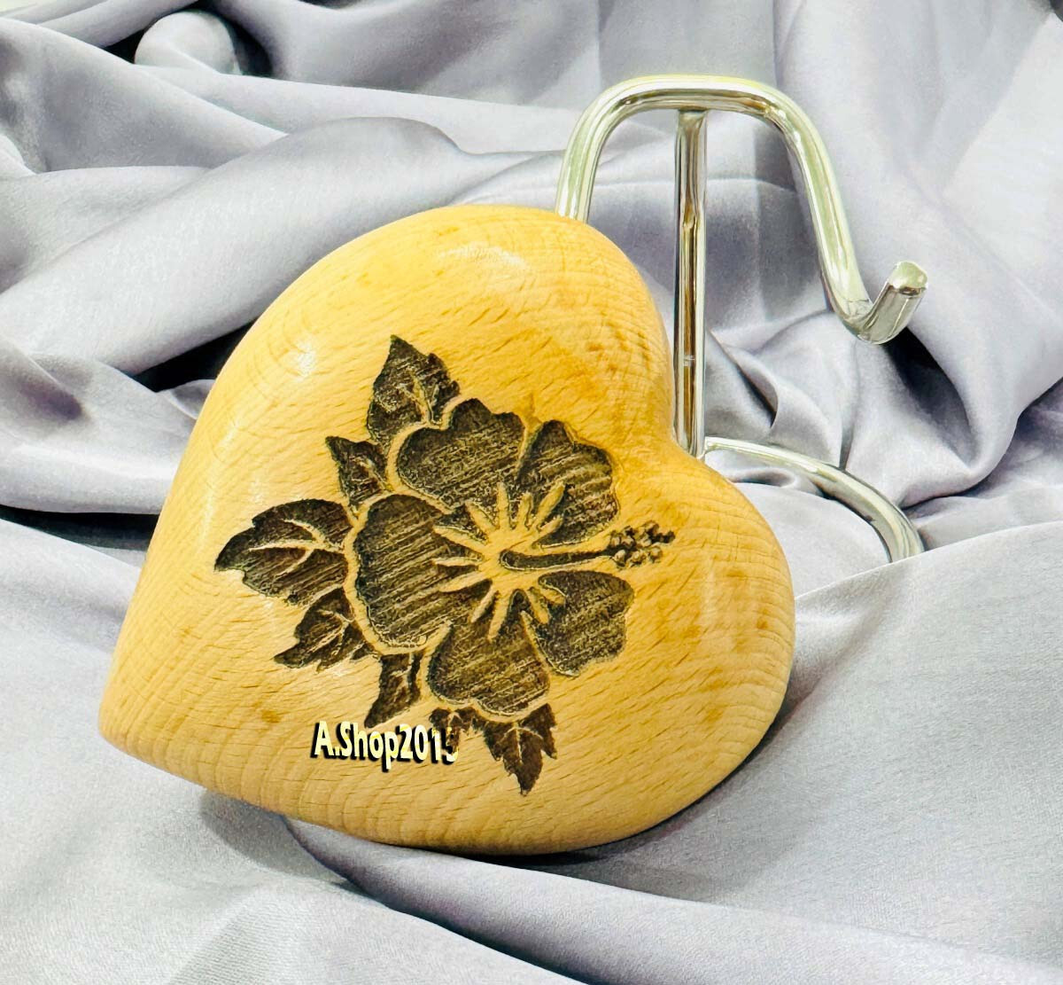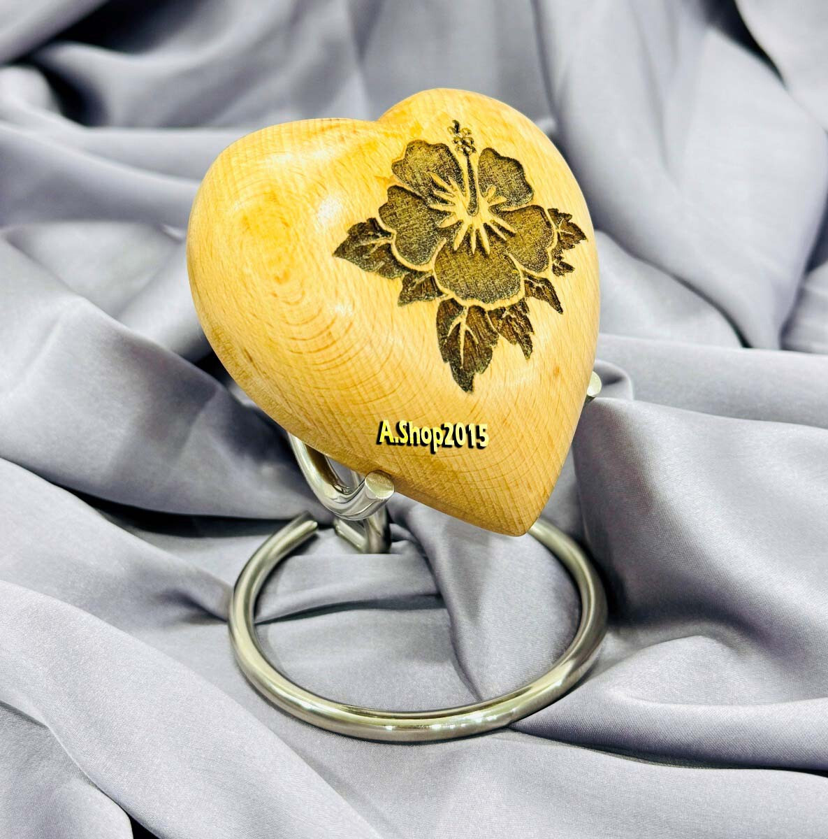 Wooden Heart Urn for Human Ashes, Pet Ashes - Cremation Urn for Ashes, Hibiscus