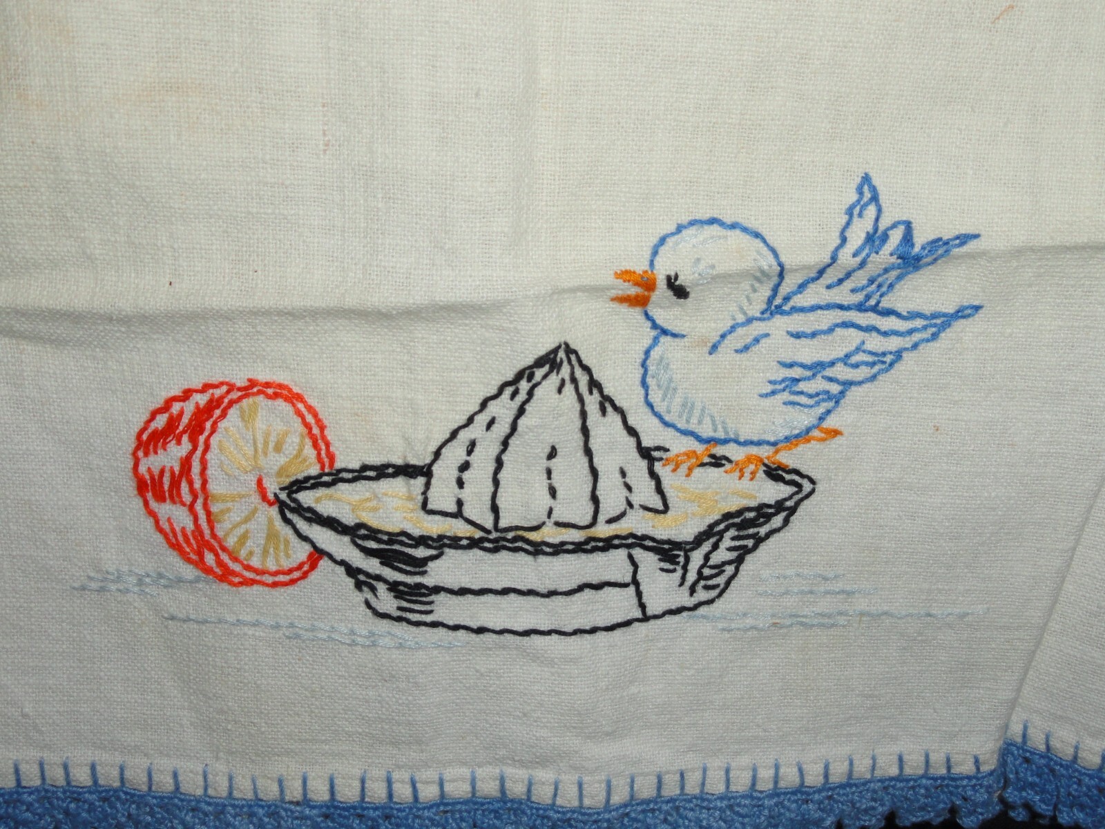 • Vintage Tea/Hand Towel Blue Bird Embroidered Hand Made Kitchen Towel
